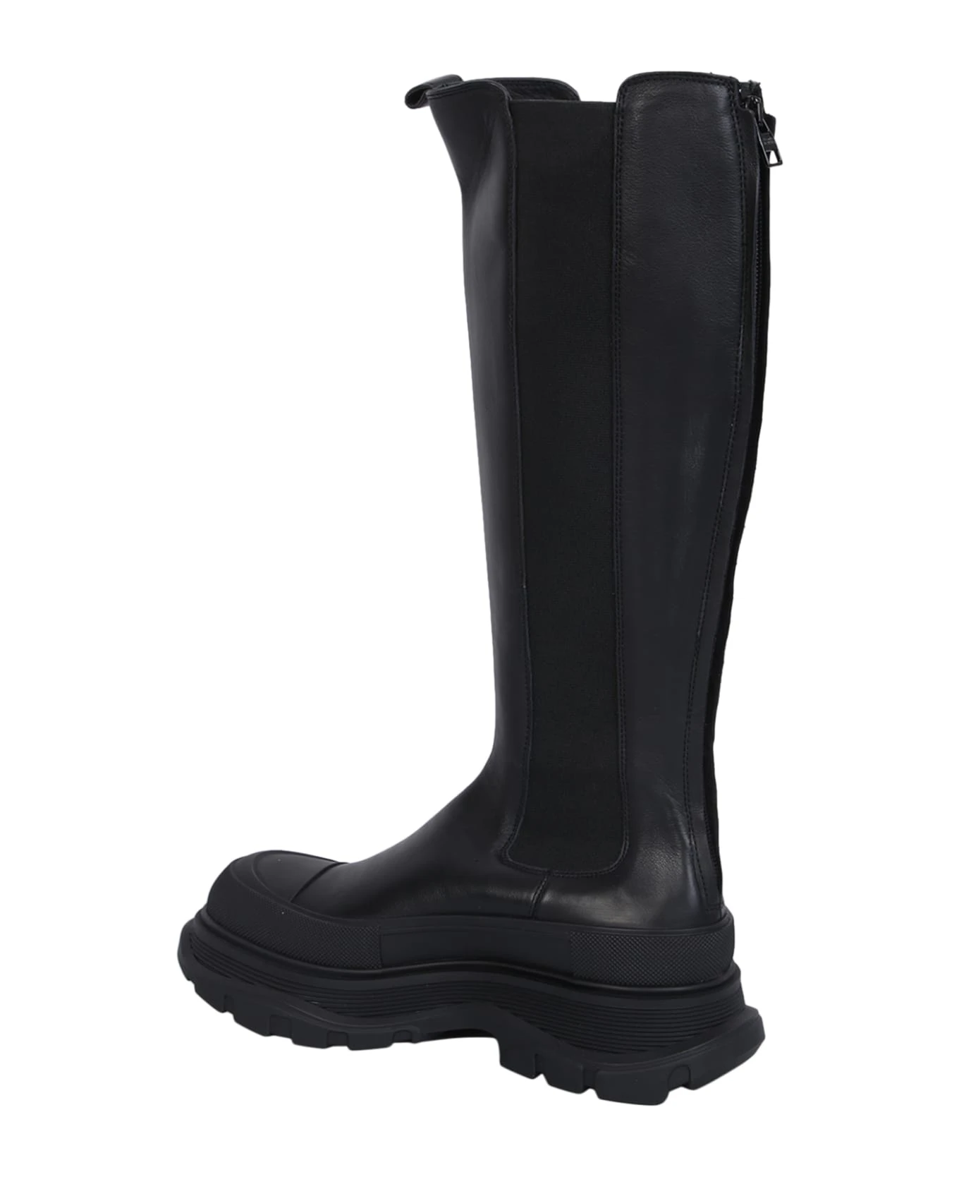 Round toe. Rear zip fastening. Chunky rubber sole. Color: black
