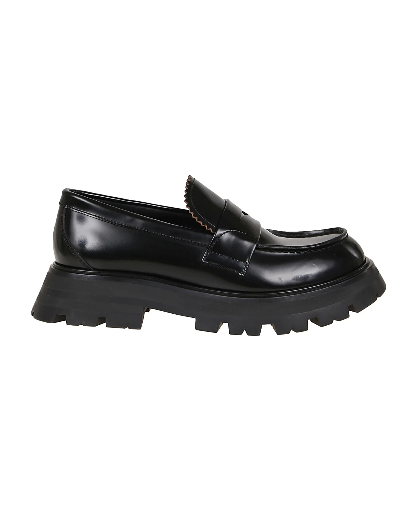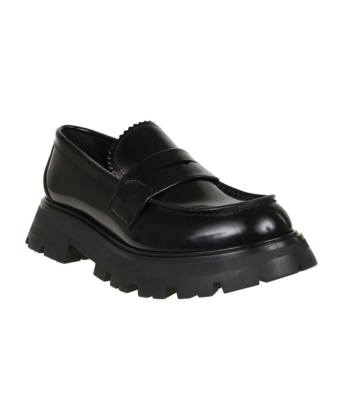 Wander moccasin in brushed calfskin BY ALEXANDER MCQUEEN. Round tip; oversized flared serrated sole in rubber.