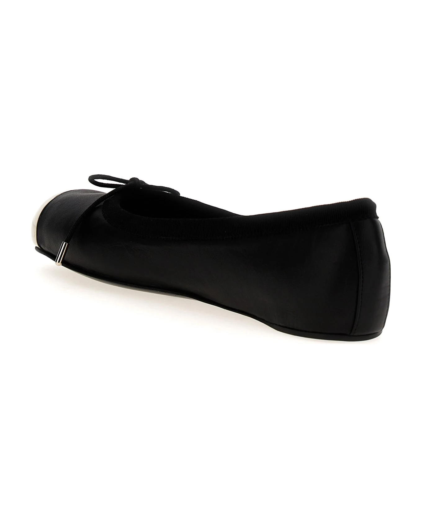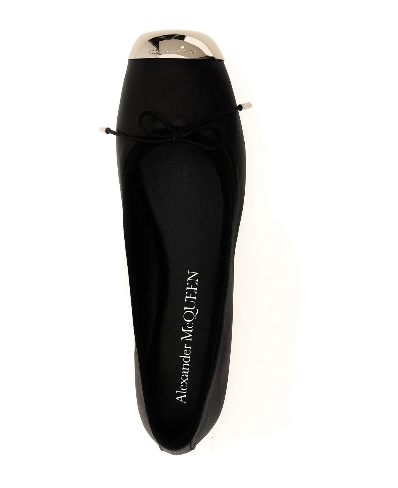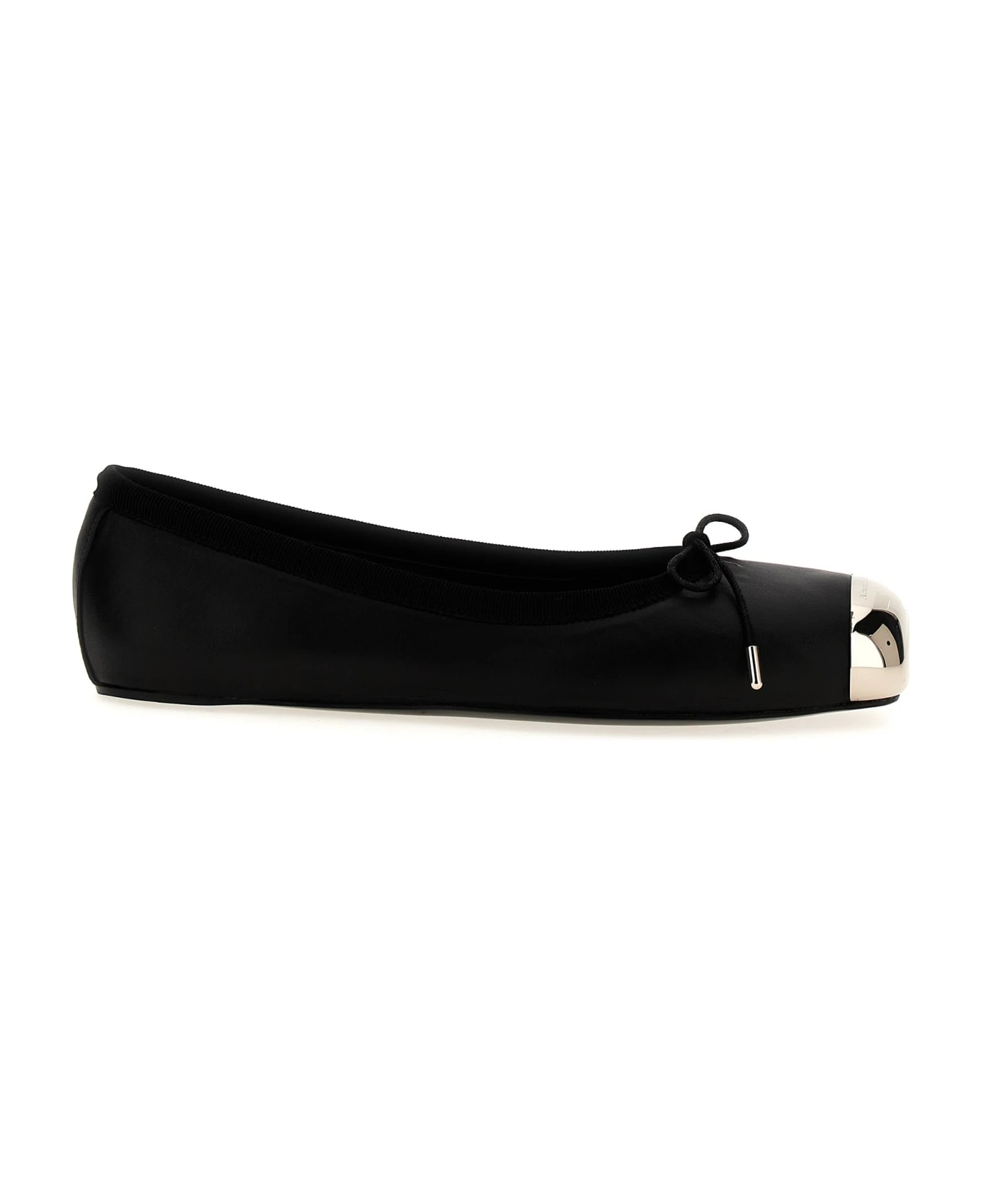 Leather ballet flats with silver metal toe, and leather sole.