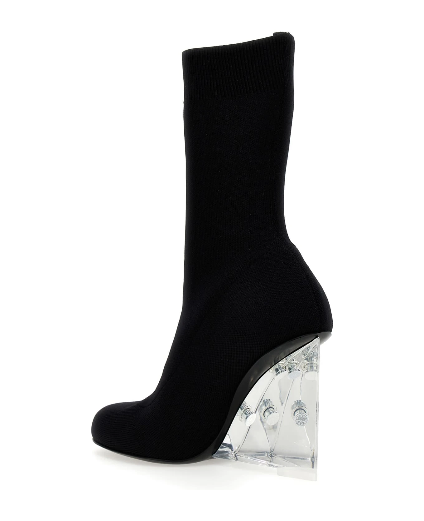 Shard’ viscose knitted ankle boots featuring hand-crafted plexiglass heels inspired by the shape of a fragment.
