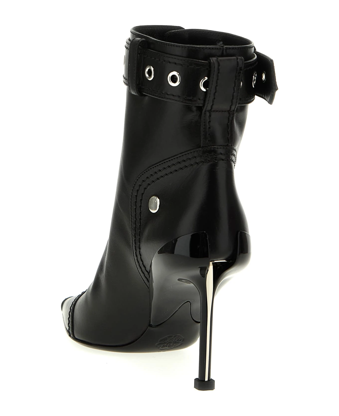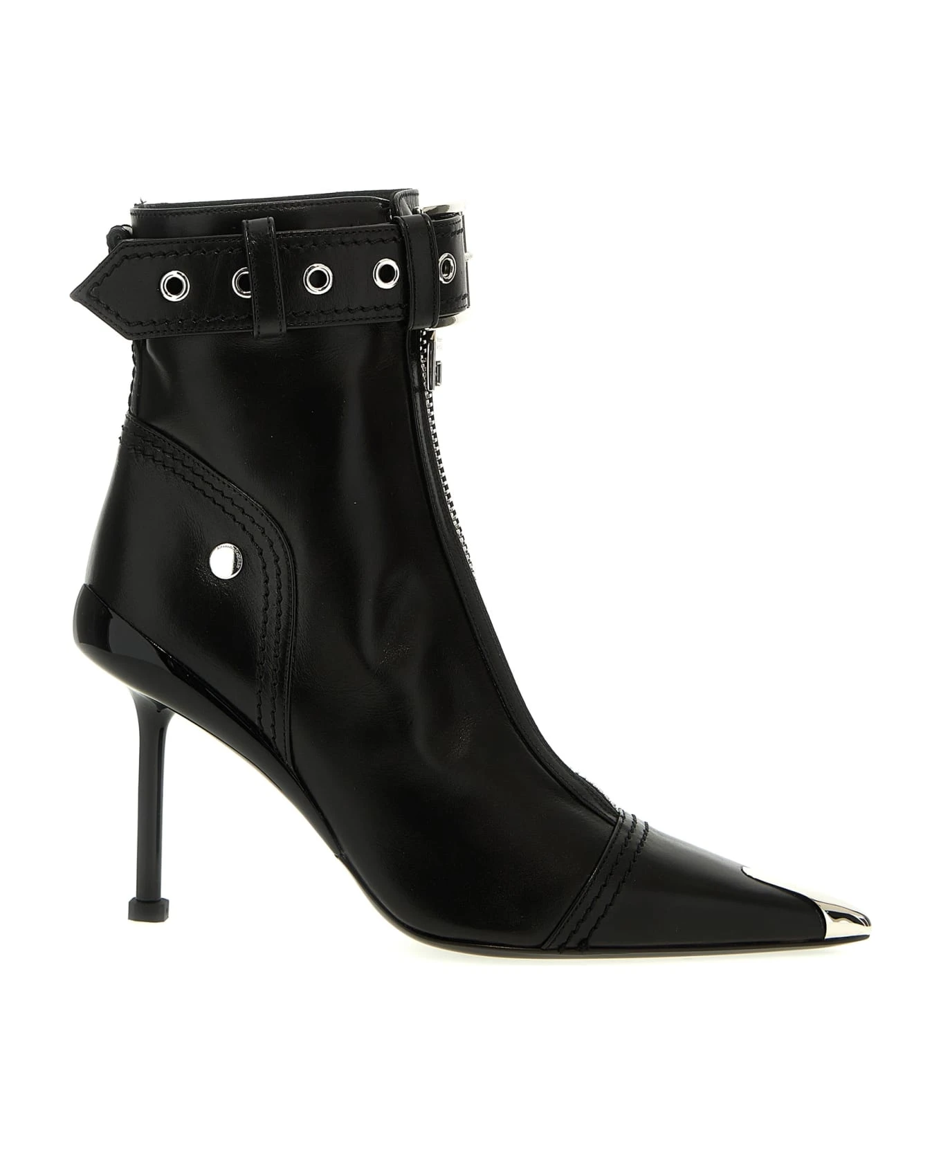 ‘Slash biker’ leather ankle boots with front zip, ankle strap with buckle and metal toe detail.