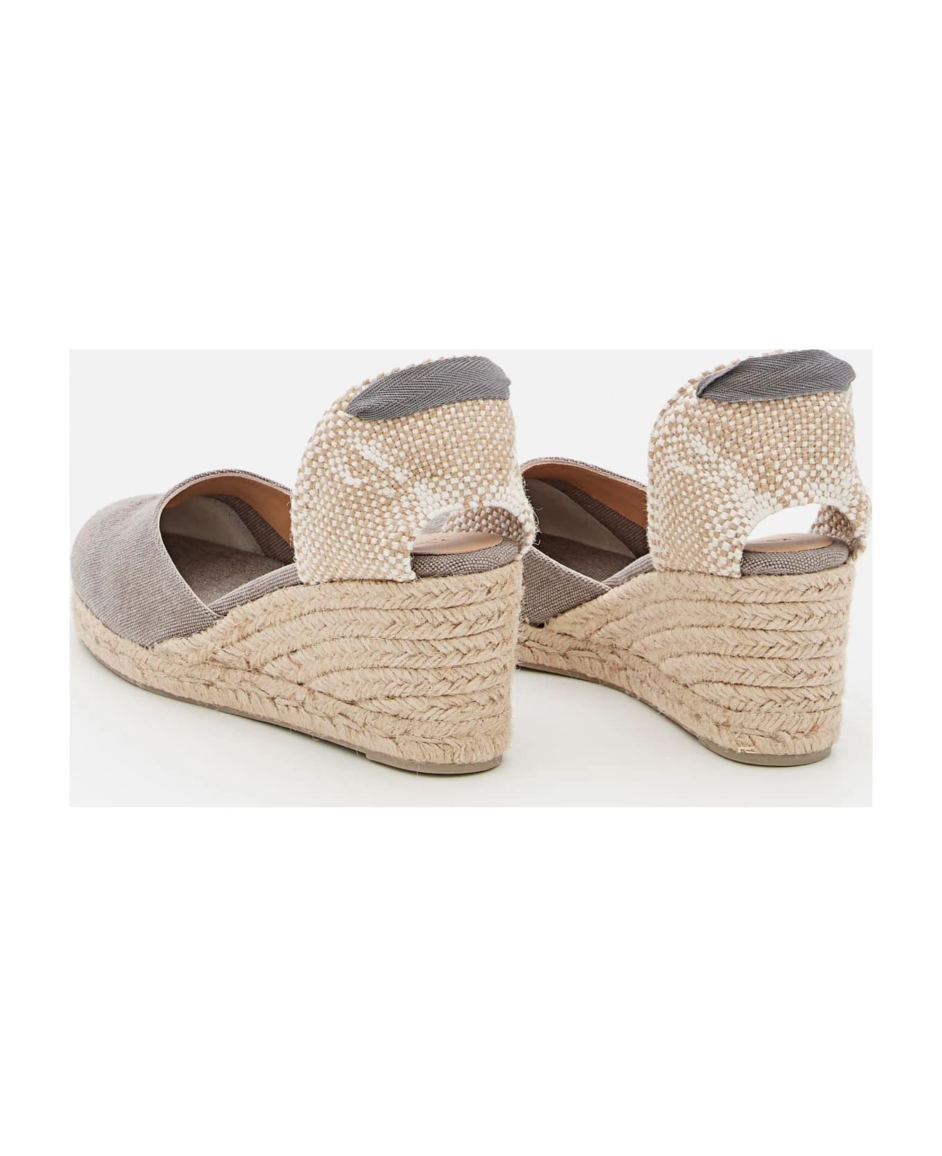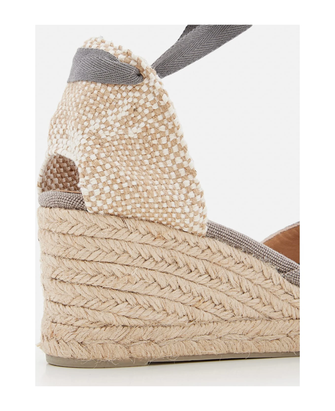 Cotton upper. Natural rubber sole. Lace-up ankle strap. Color: grey.