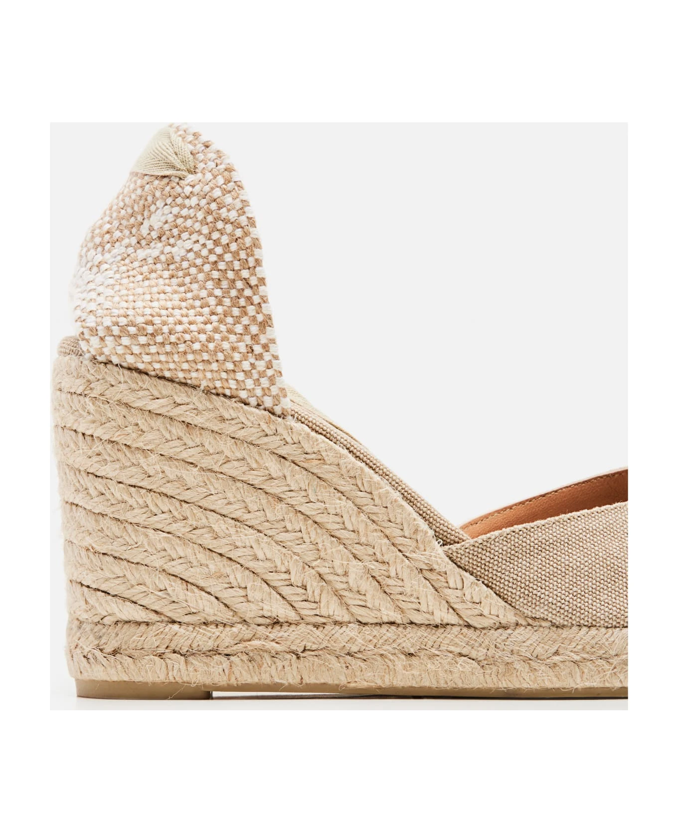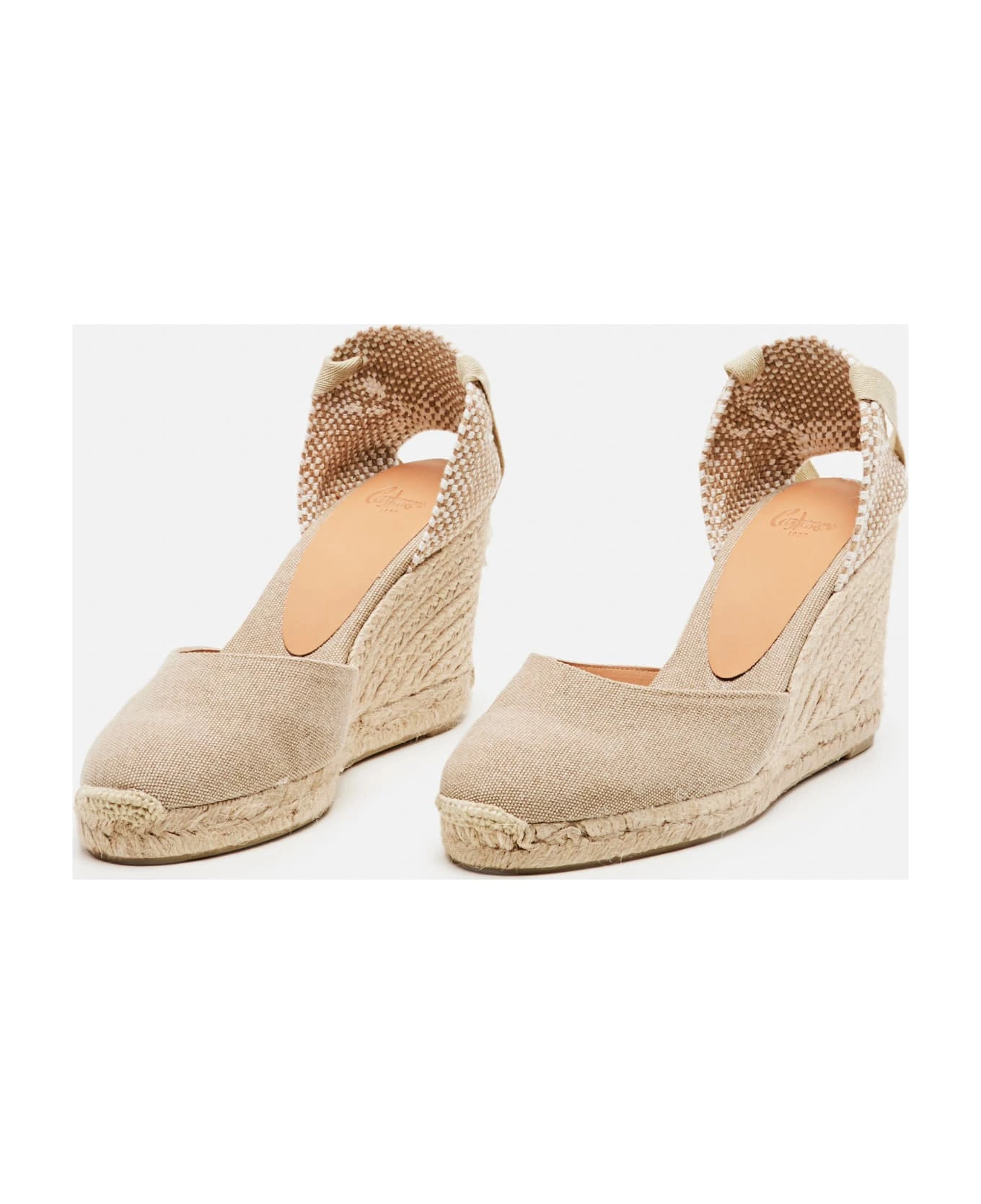 Cotton upper Natural rubber sole Lace-up ankle strap Color: white.