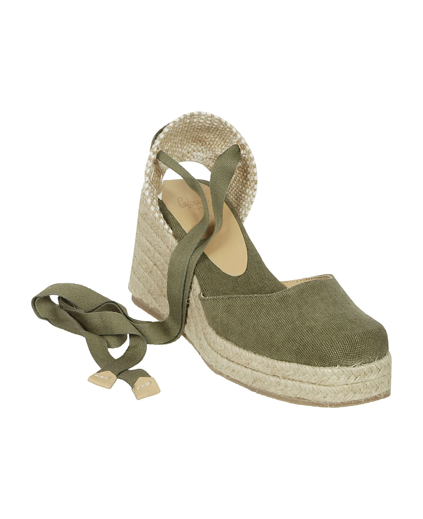 Castaner espadrilles tied at the ankle, with upper in cotton, 7 cm high wedge, 2 cm platform, rubber sole.