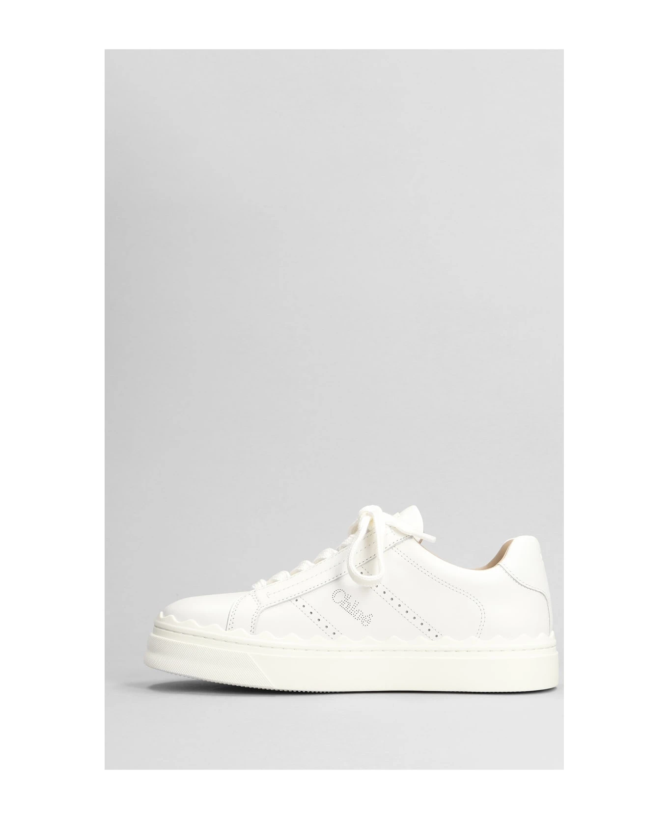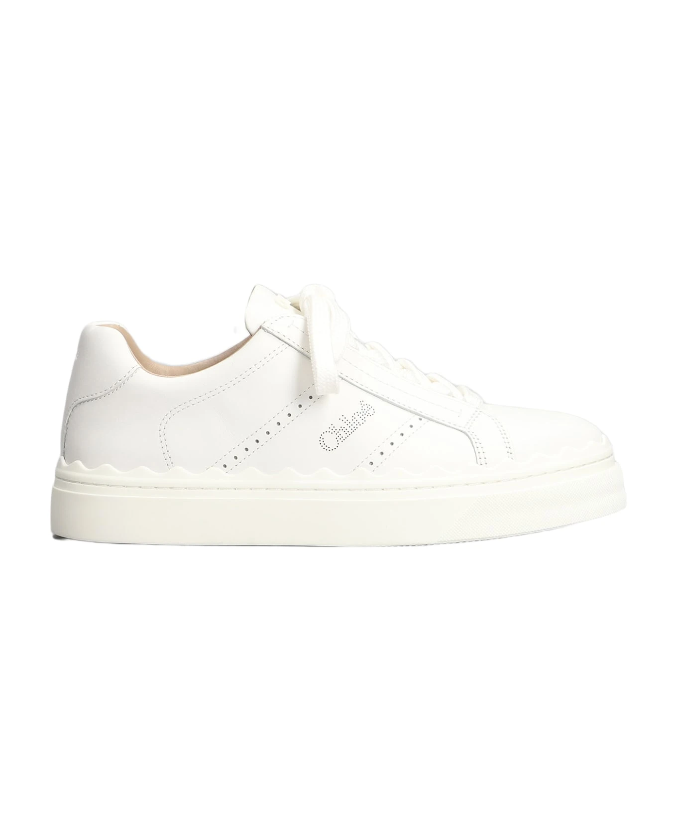 Lauren Sneakers in white leather, laces, logo on heel, waves curved, laser logo, 100% leather, rubber outsole, Made in Italy