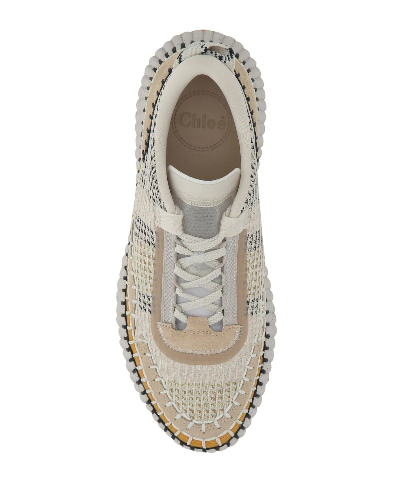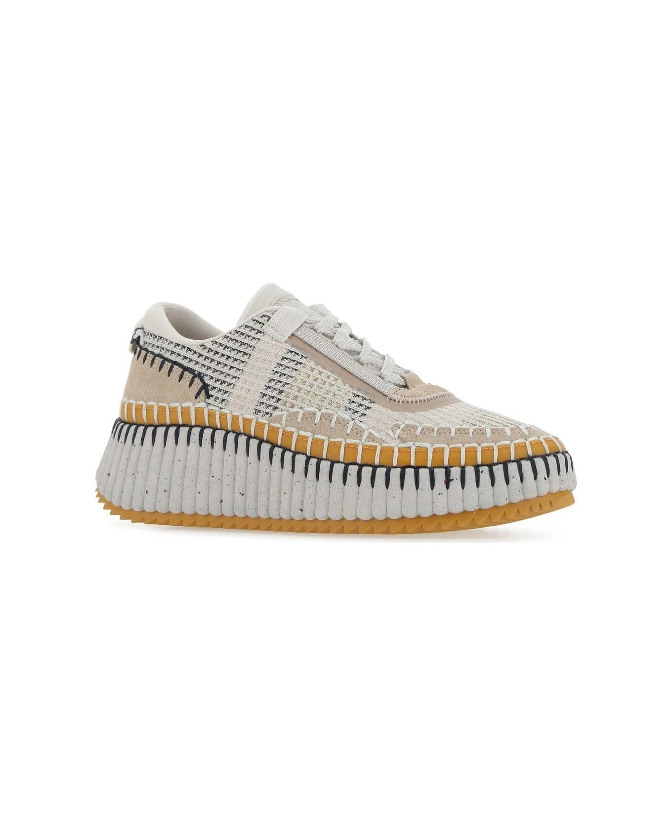 Sneakers realized in recycled fabric with suede inserts characterized by embossed logo at the back.