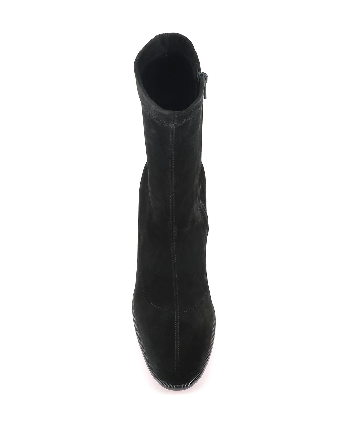 Black suede stretch suede ankle boot by Christian Louboutin, featuring a round toe and a side zip fastening. Lined interior. Leather sole. Heel: 7 cm