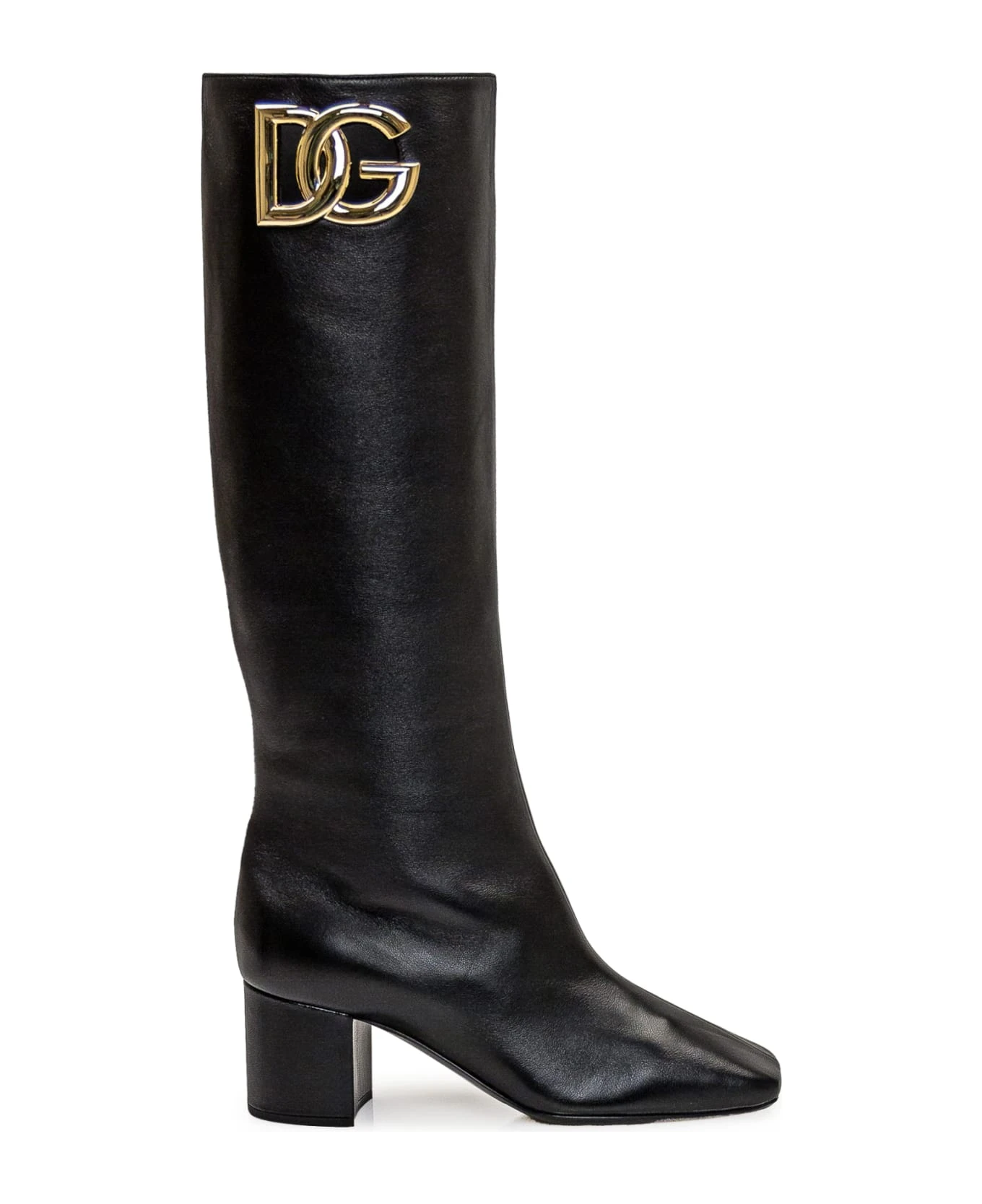 Black boot. DG logo in metal. Square toe. Round heel.