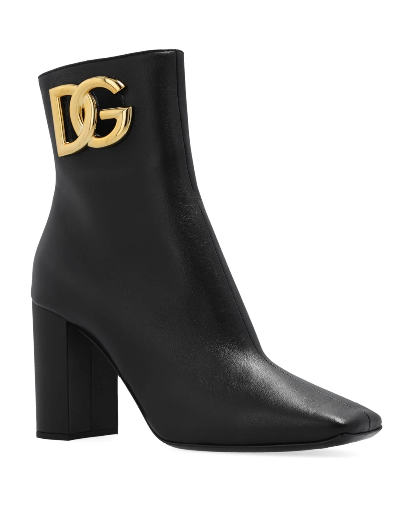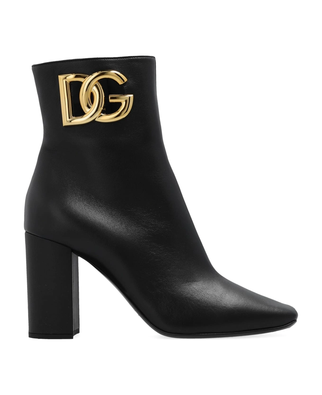 – Composition: 100% calf leather – Inner: Leather – Insole: Leather – Sole: Leather – Side zip closure – Square toe – Heel 9,5 cm – Gold-tone logo hardware