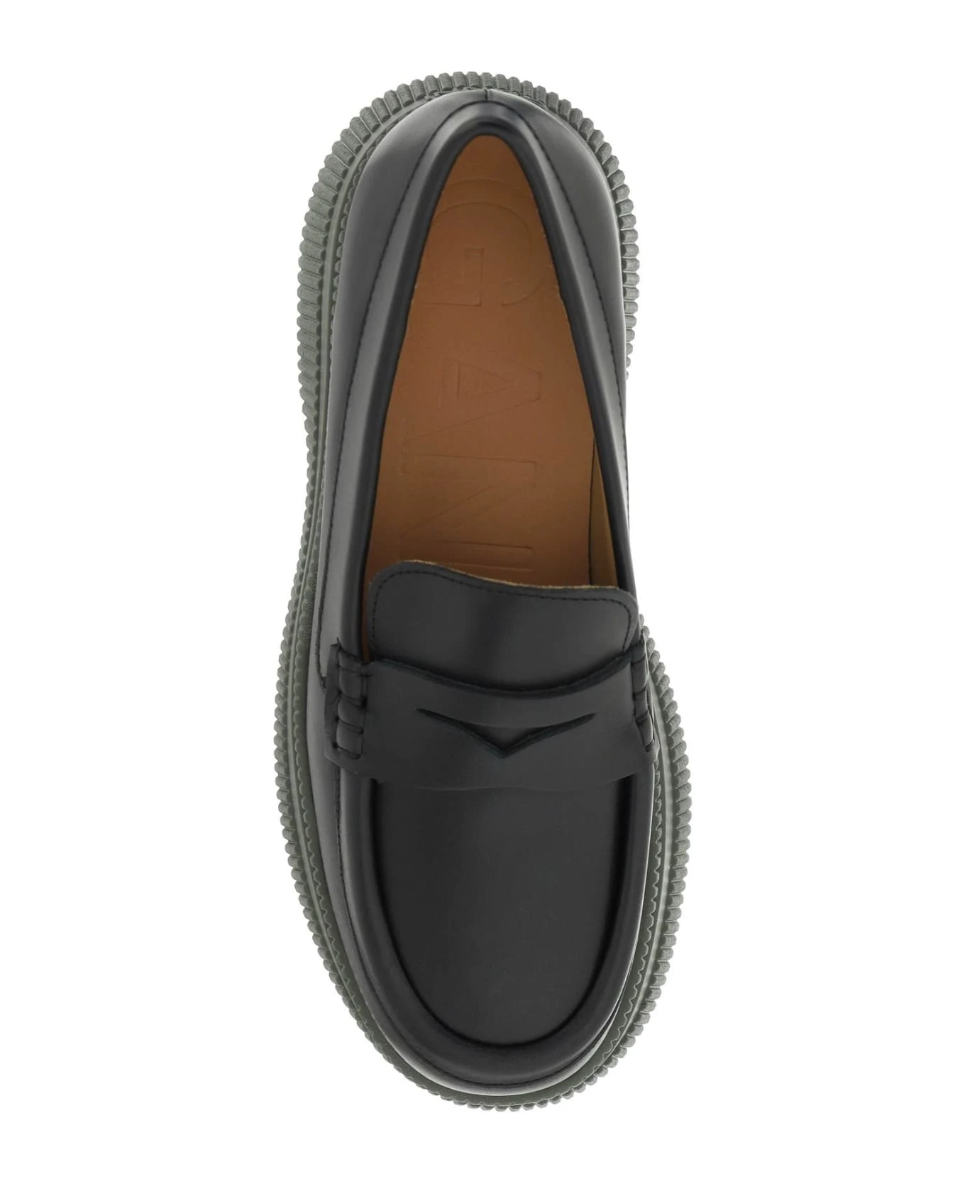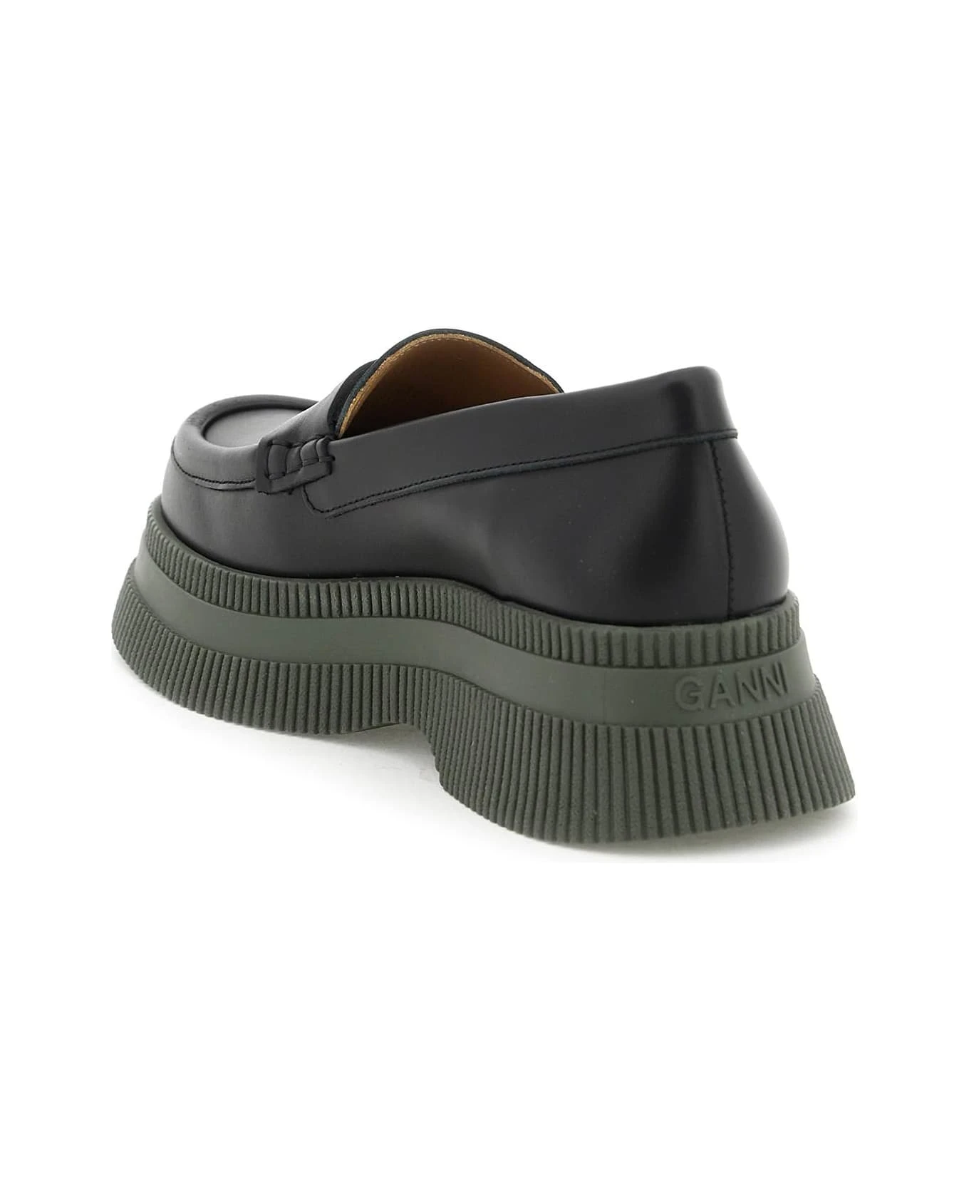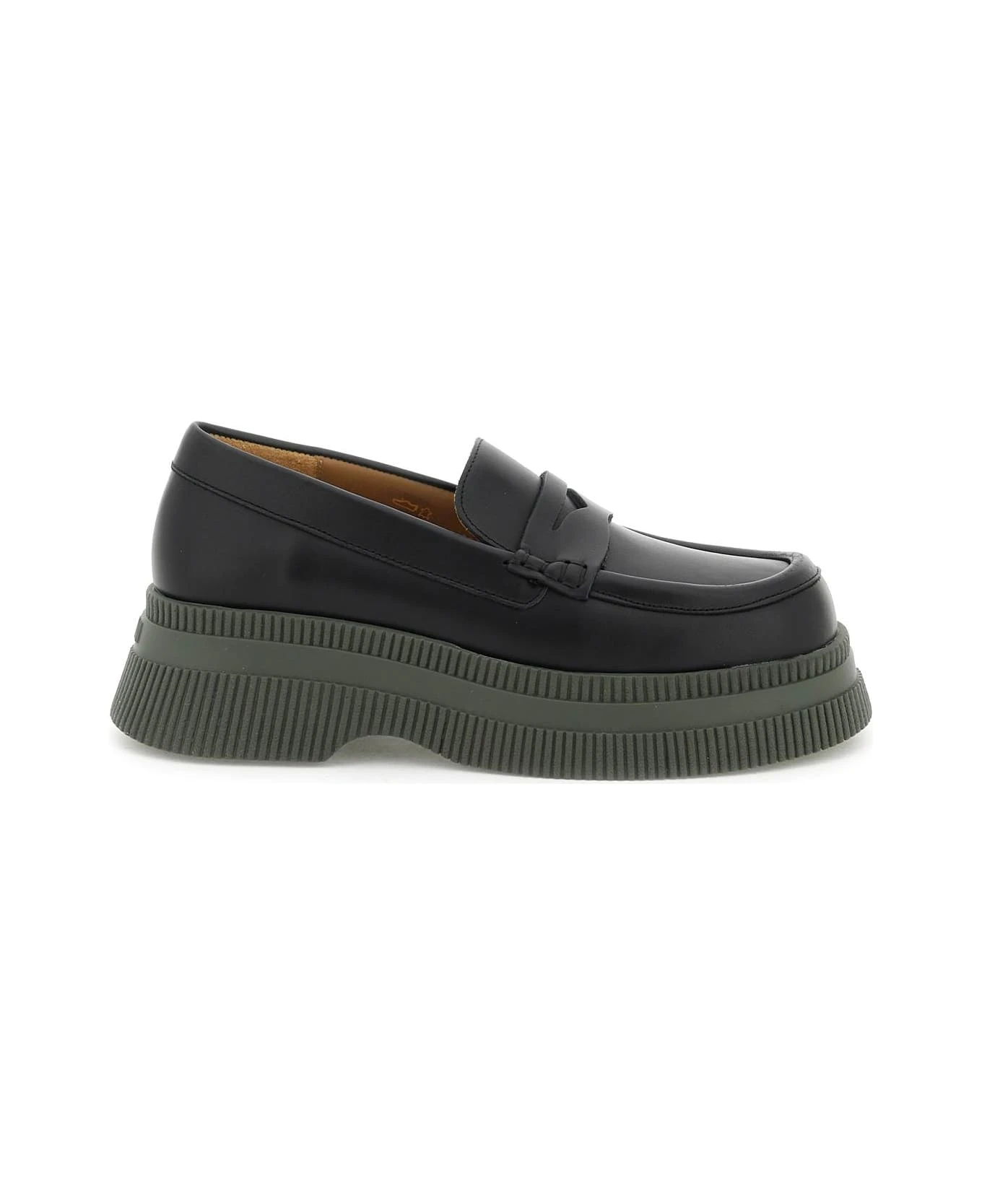Leather loafers by GANNI with rear lettering logo, leather interior and insole and creeper-style rubber sole.