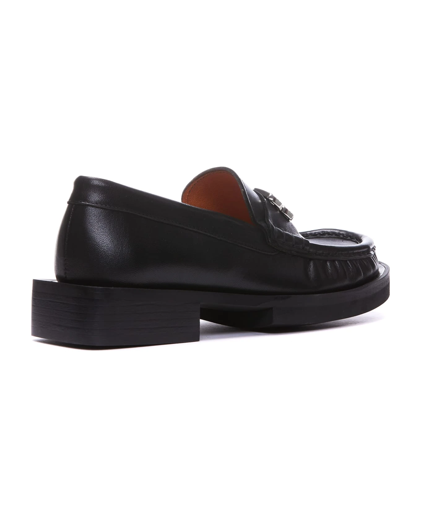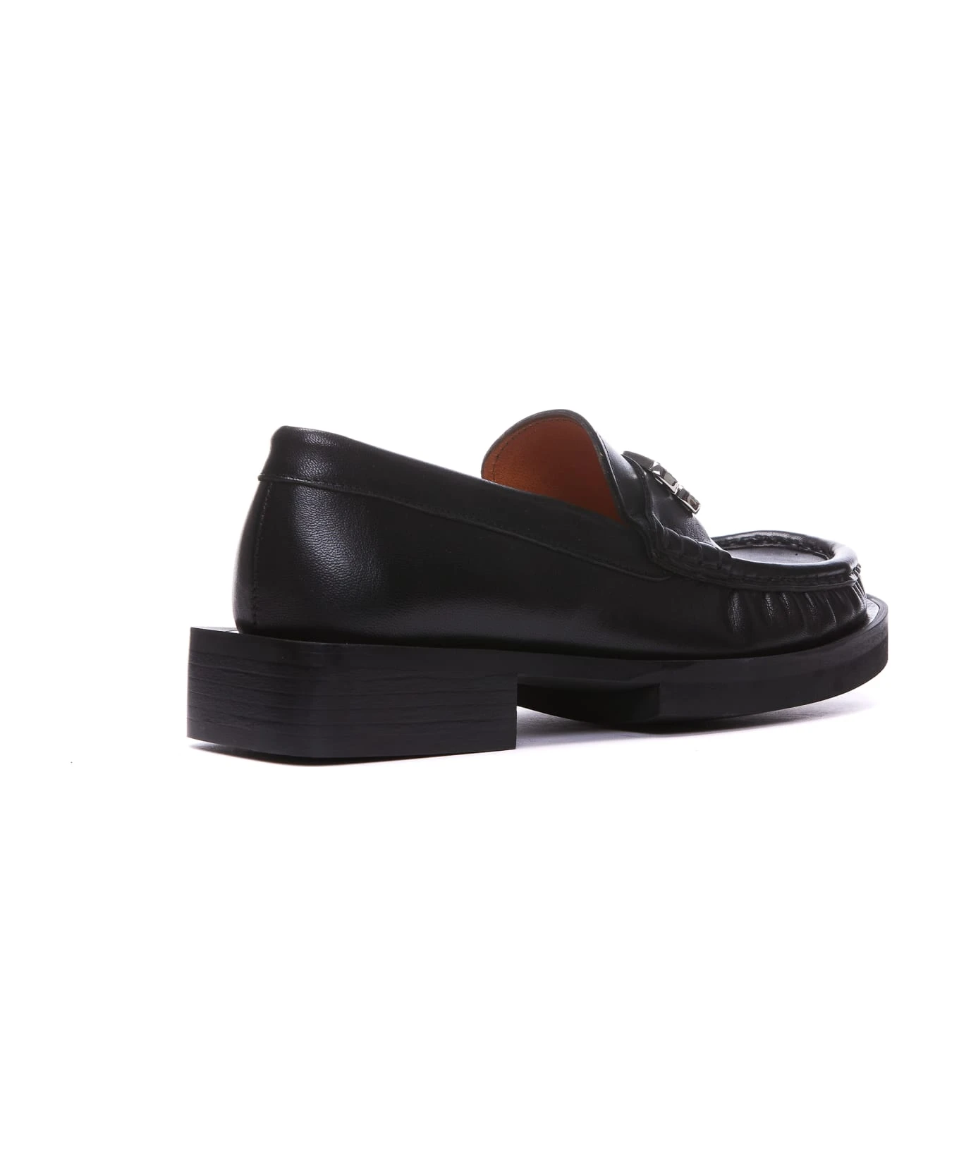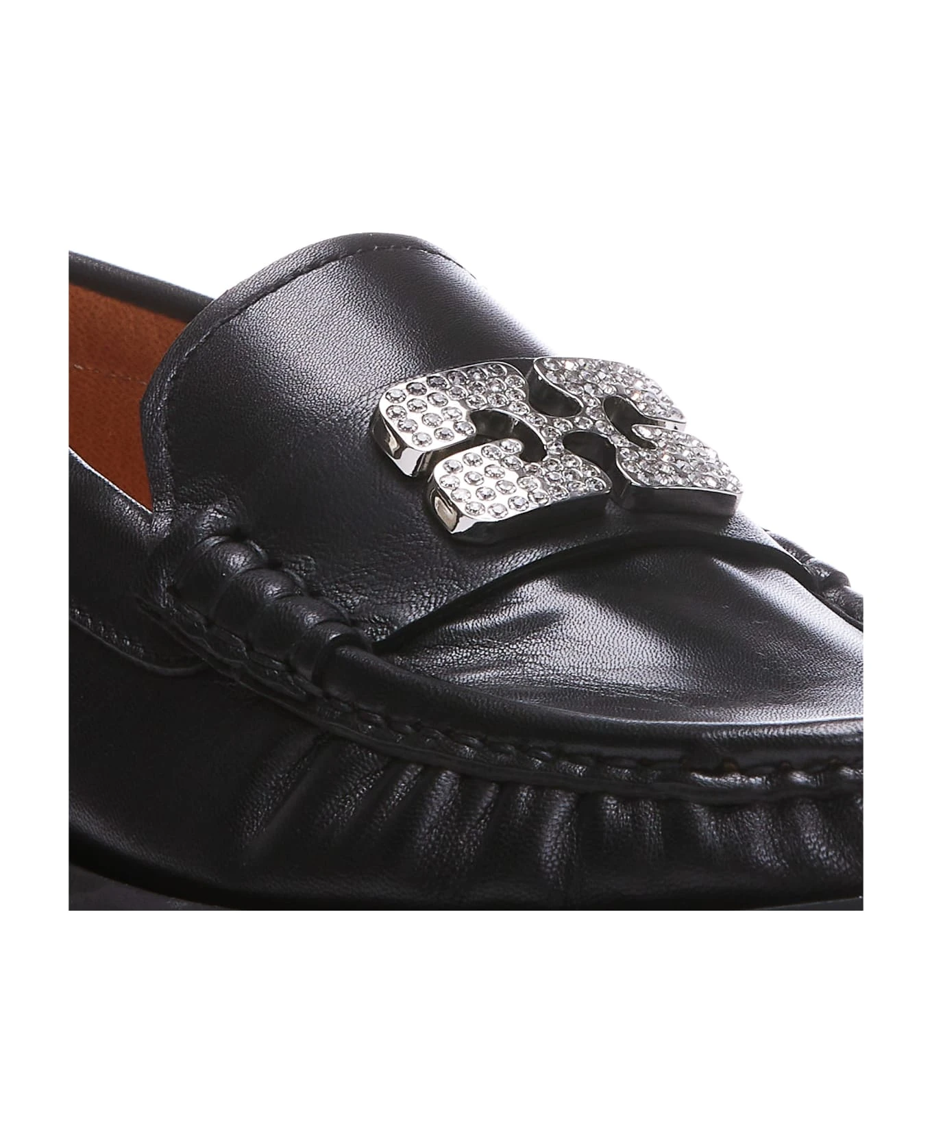 Ganni black Rhinestone logo loafers, logo on front, round toe, leather upper and rubber sole, with crystals