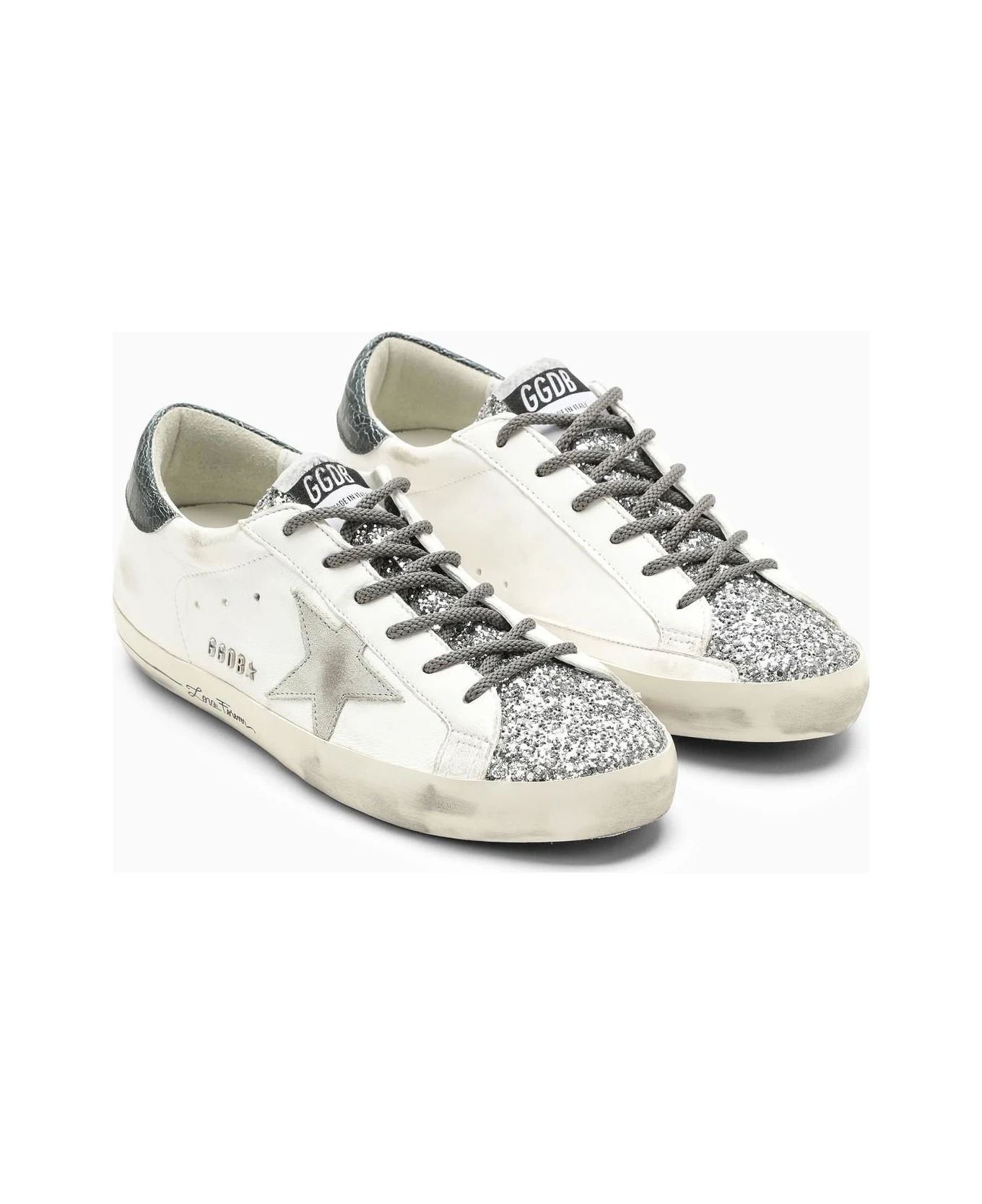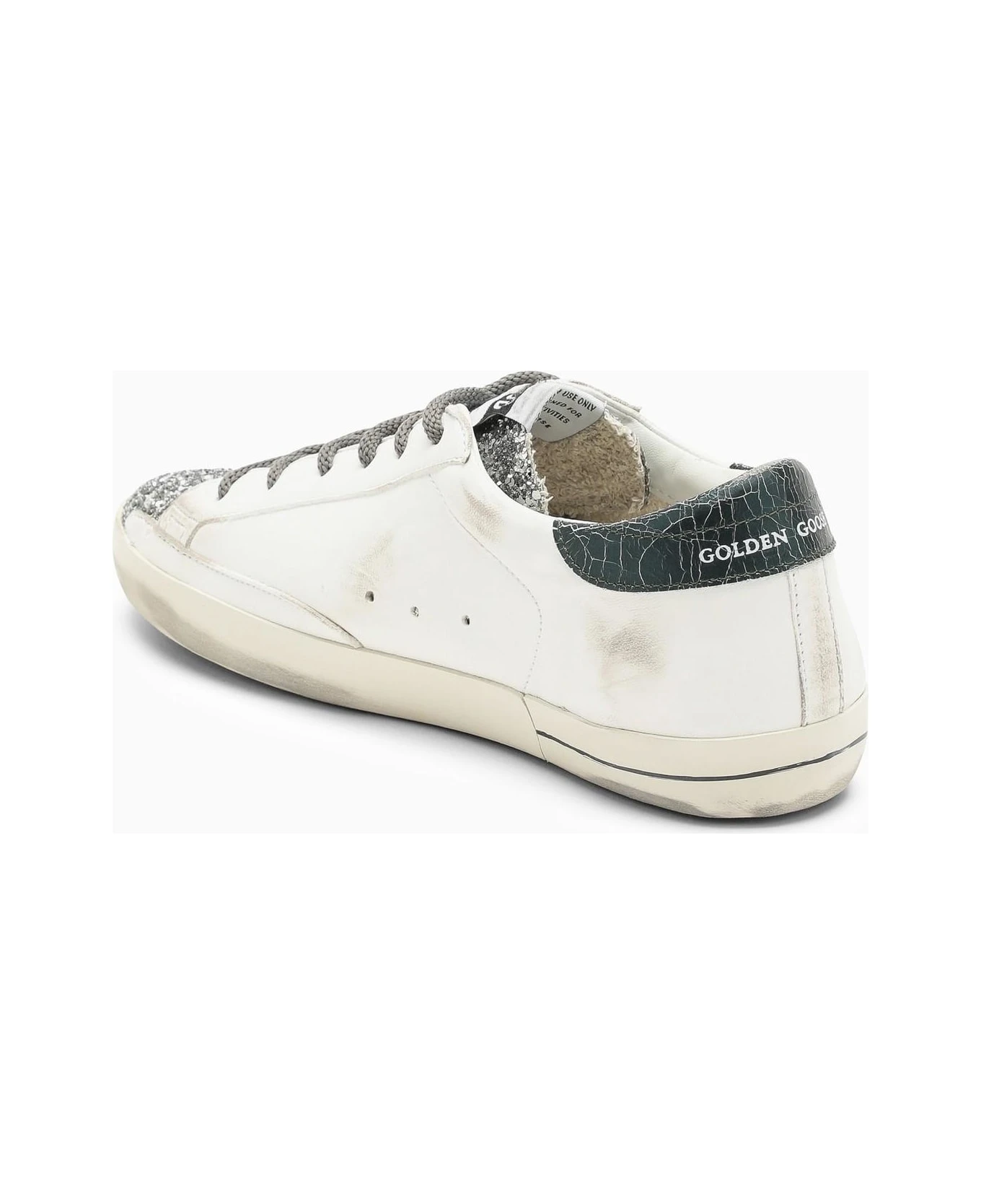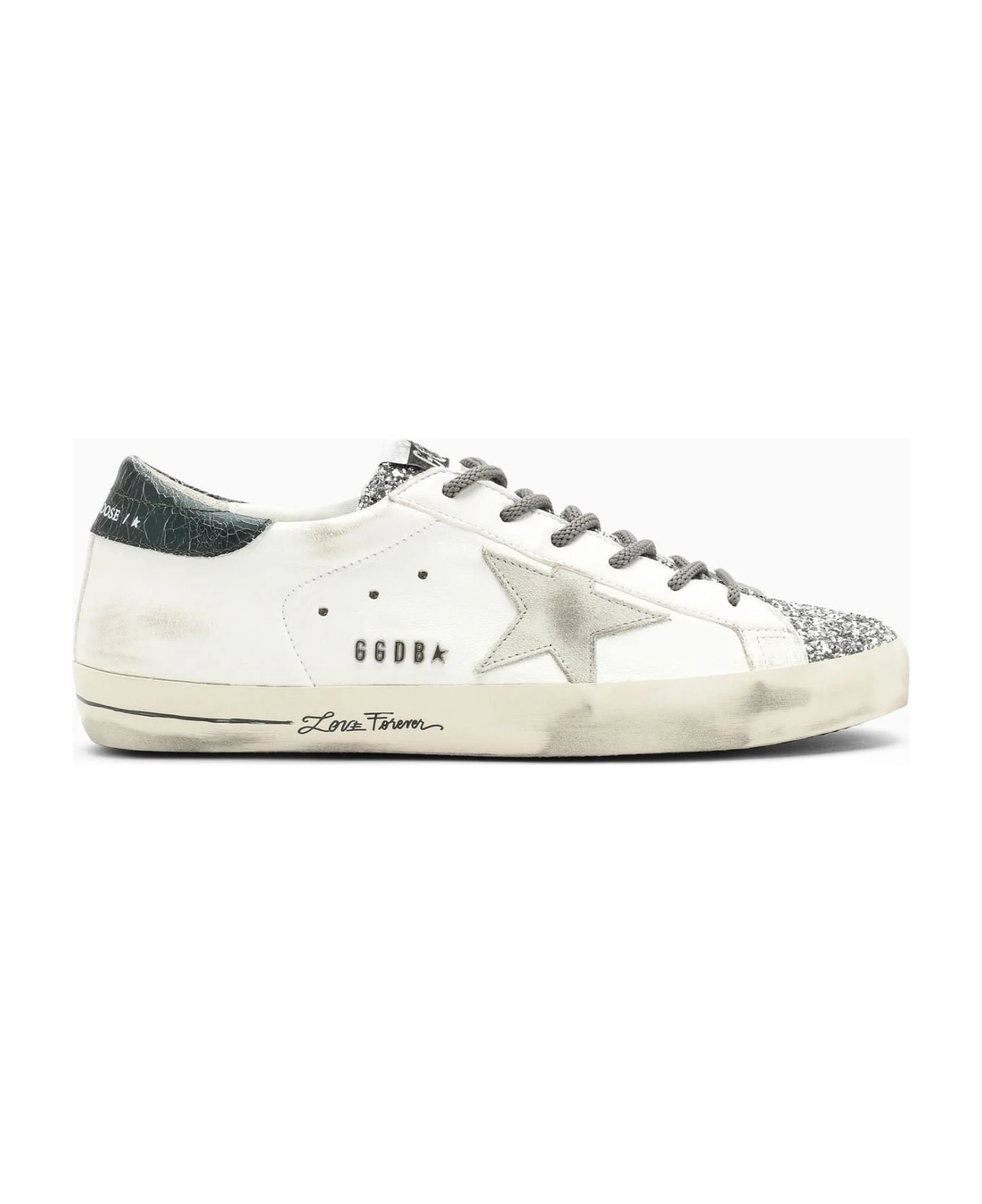 Cream smooth leather low top trainer from Golden Goose Deluxe Brand featuring a lace-up fastening, rhinestone detailing, a round toe, a rubber sole and an iconic star on the sides. Model with vintage workmanship.