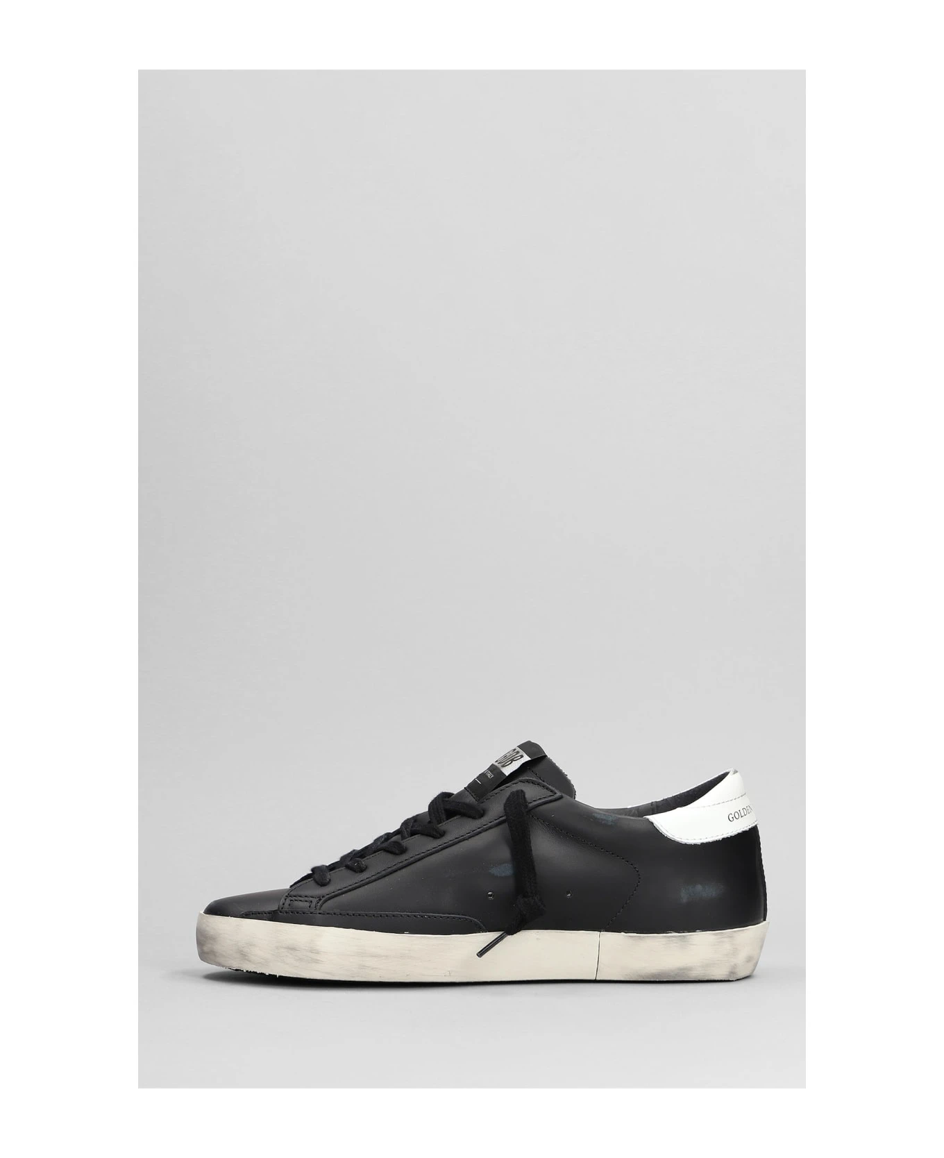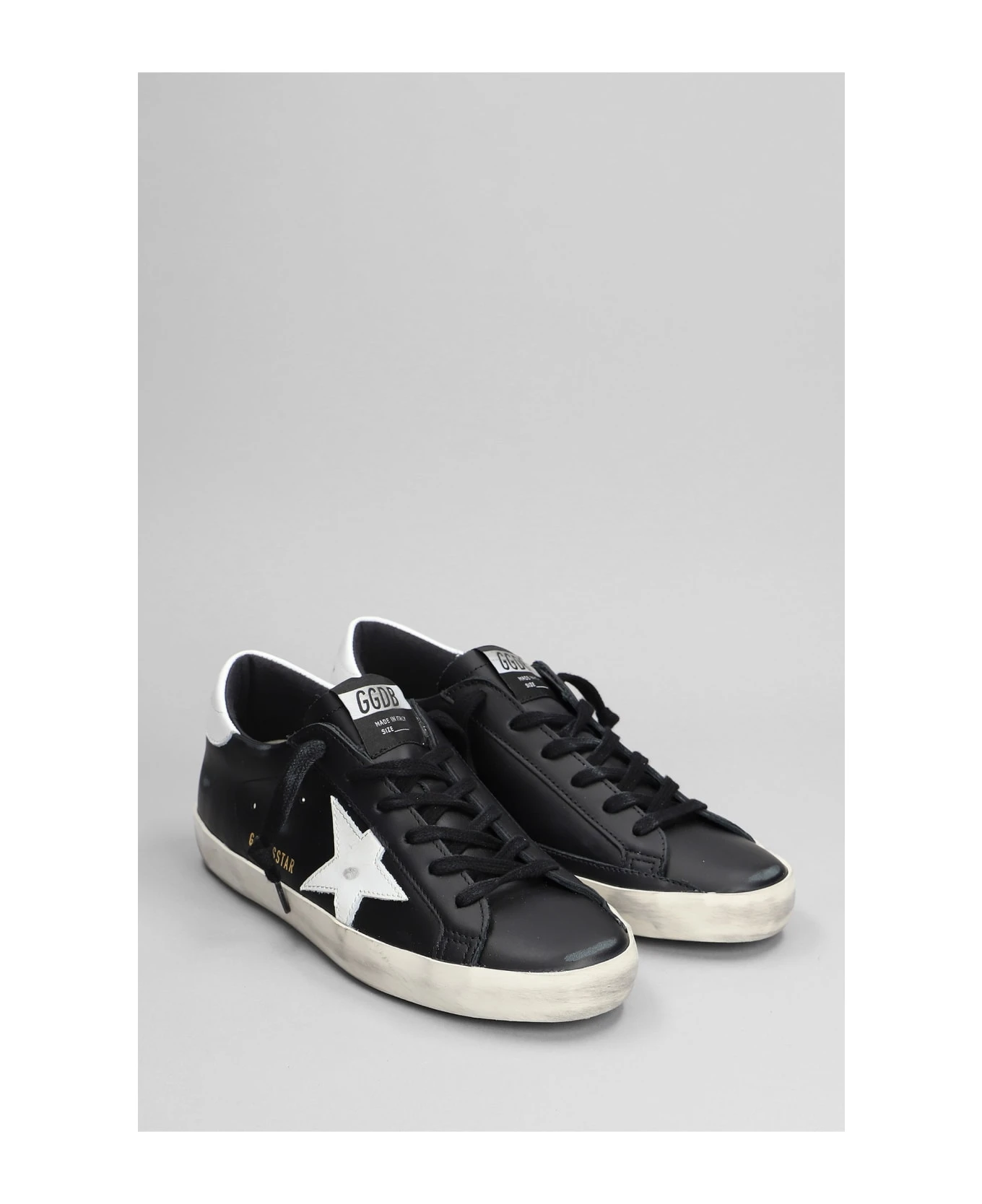 Superstar Sneakers in black leather, laces, logo on heel, star on side, side logo print, 100% leather, rubber outsole, Made in Italy