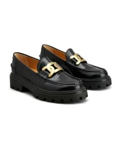 Chloé Black ‘owena’ Flat With Gold-tone Buckle Detail In Leather Woman