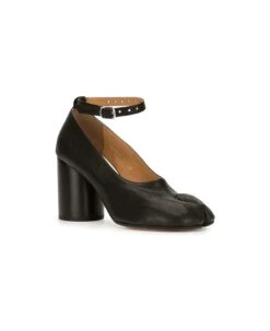 Maison Margiela Black ‘tabi’ Decolletè With Adjustable Strap And Contrasting Lining In Leather Woman