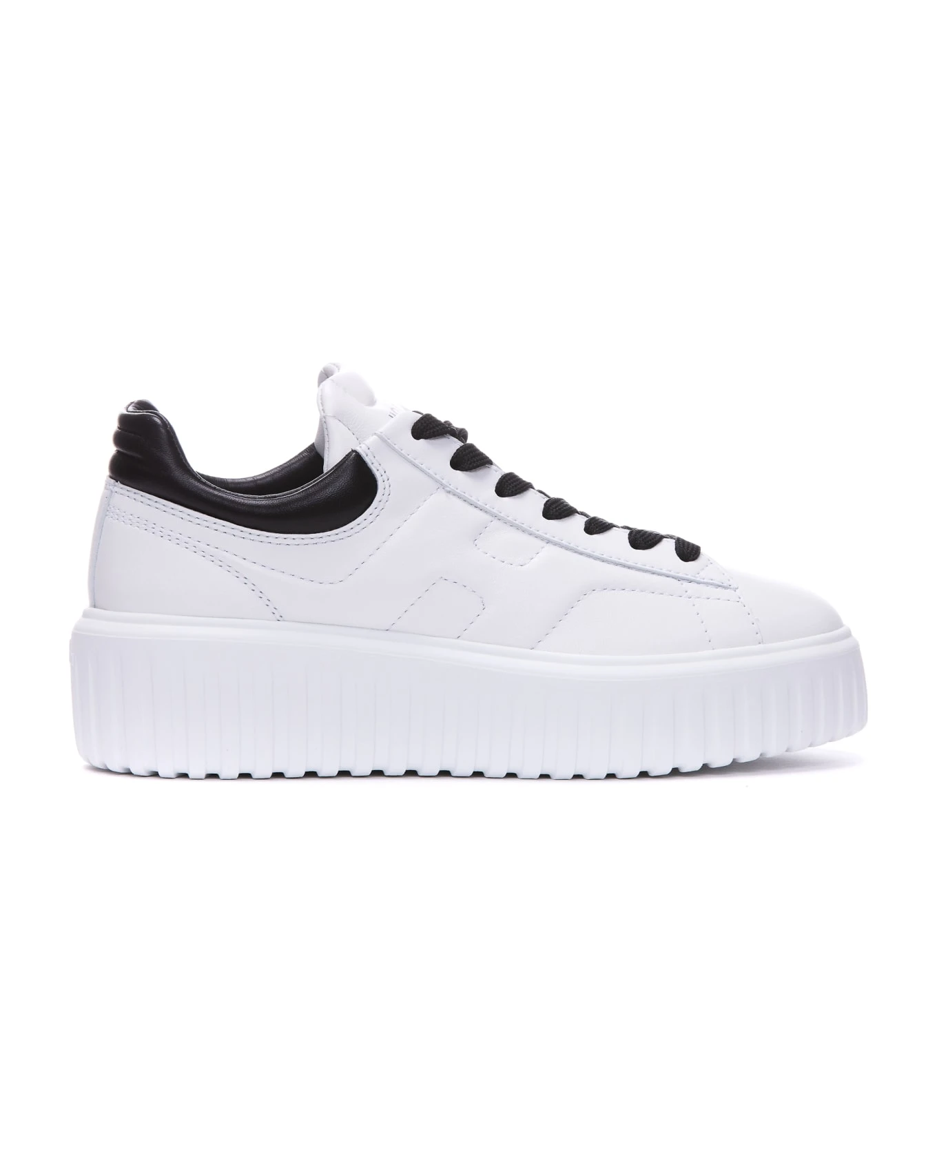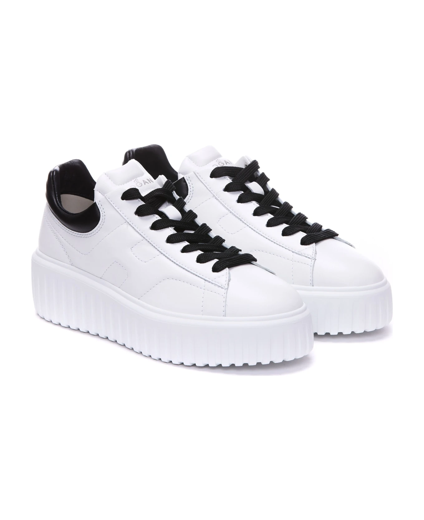 Hogan white H-Stripes sneakers, leather upper, logo, laces closure, round toe
