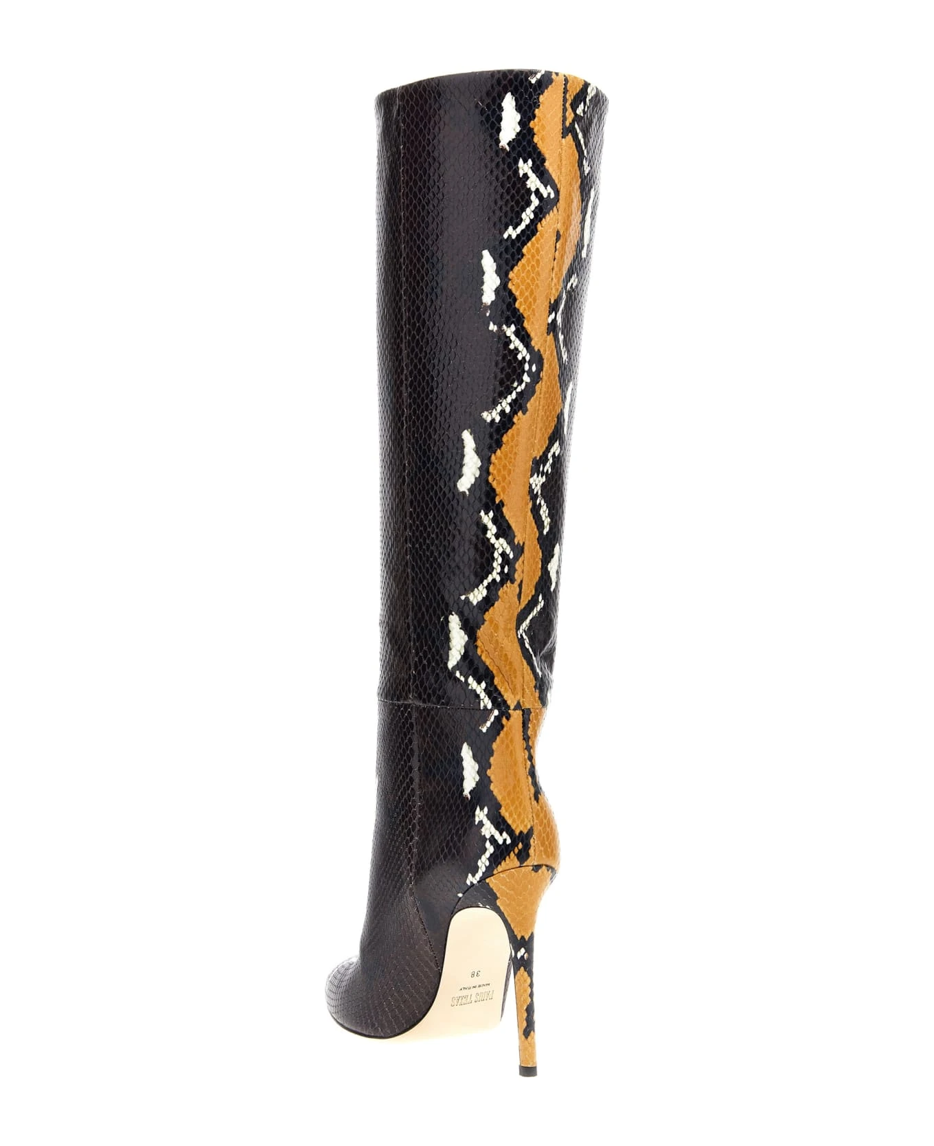 Printed Phyton’ leather boots with python print, pointed toe and stiletto heels.