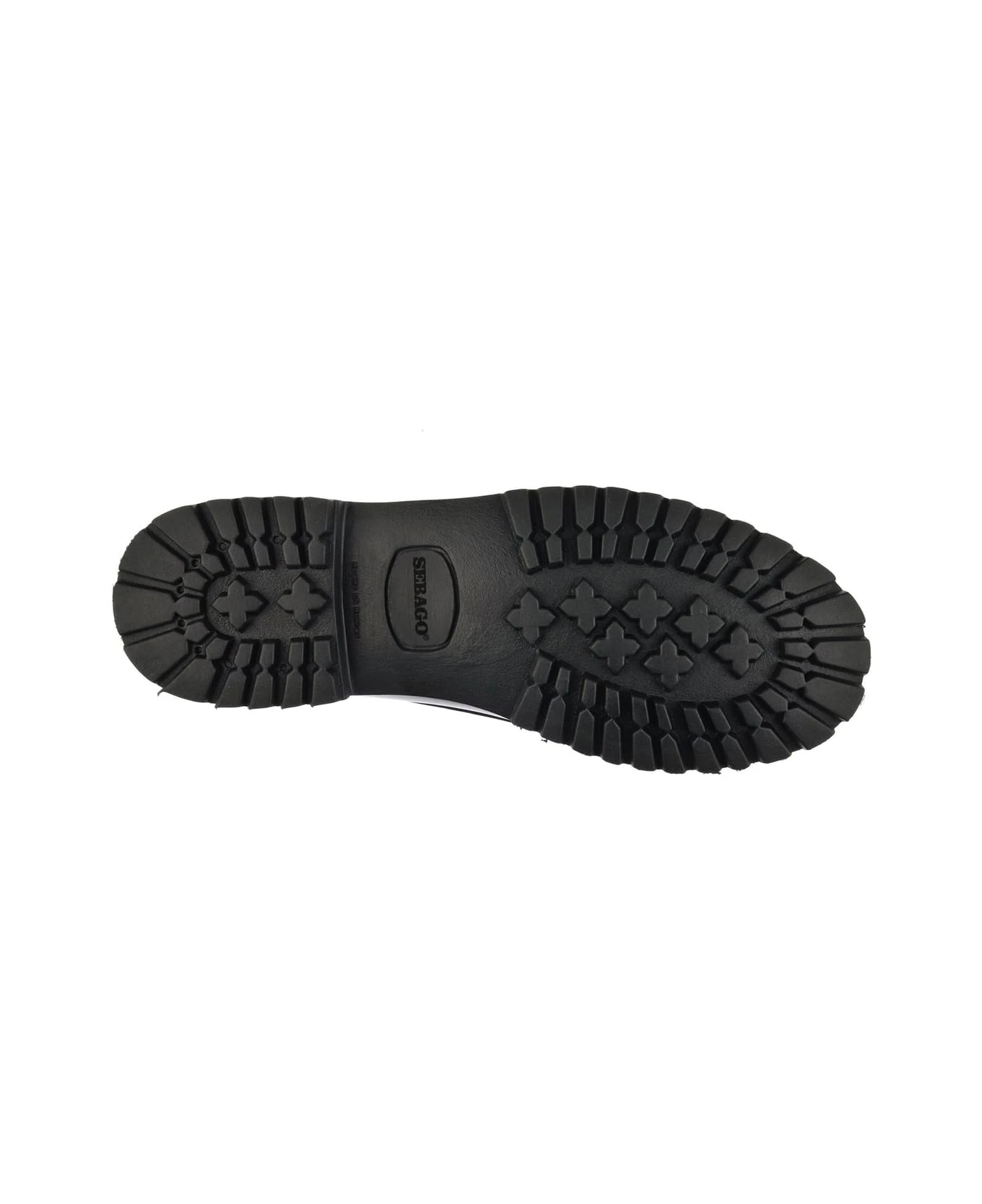 Sebago smooth brushed full-grain leather moccasin, unlined leather upper, molded rubber heel, and leather sole.