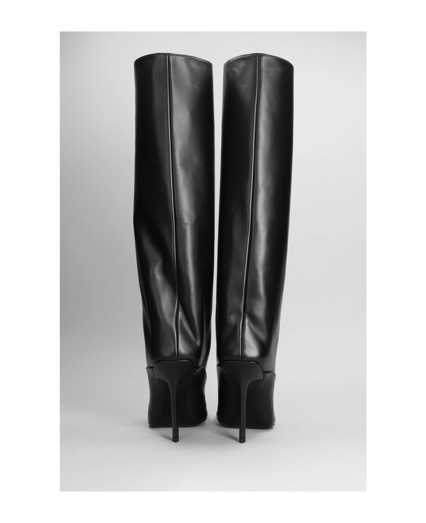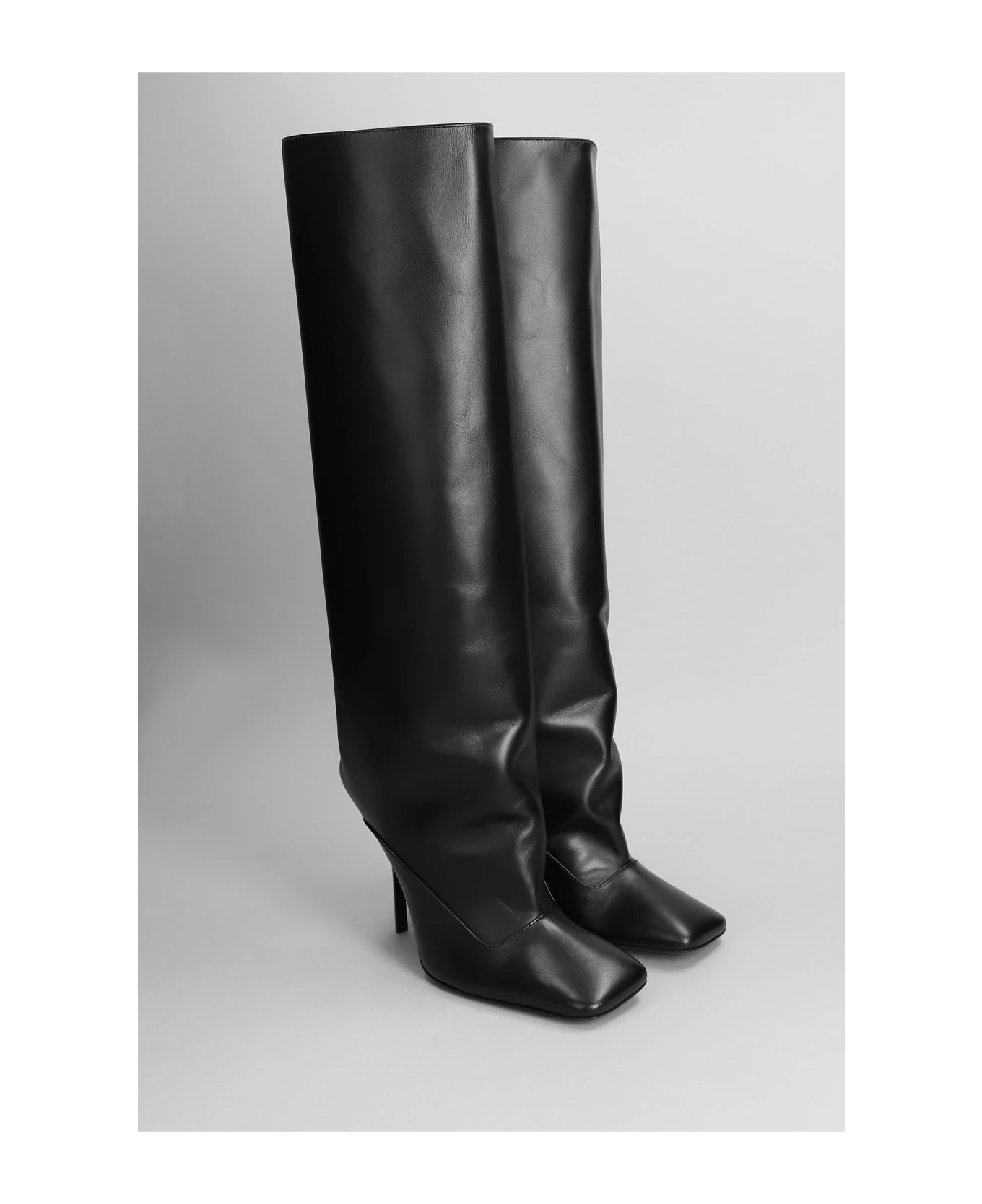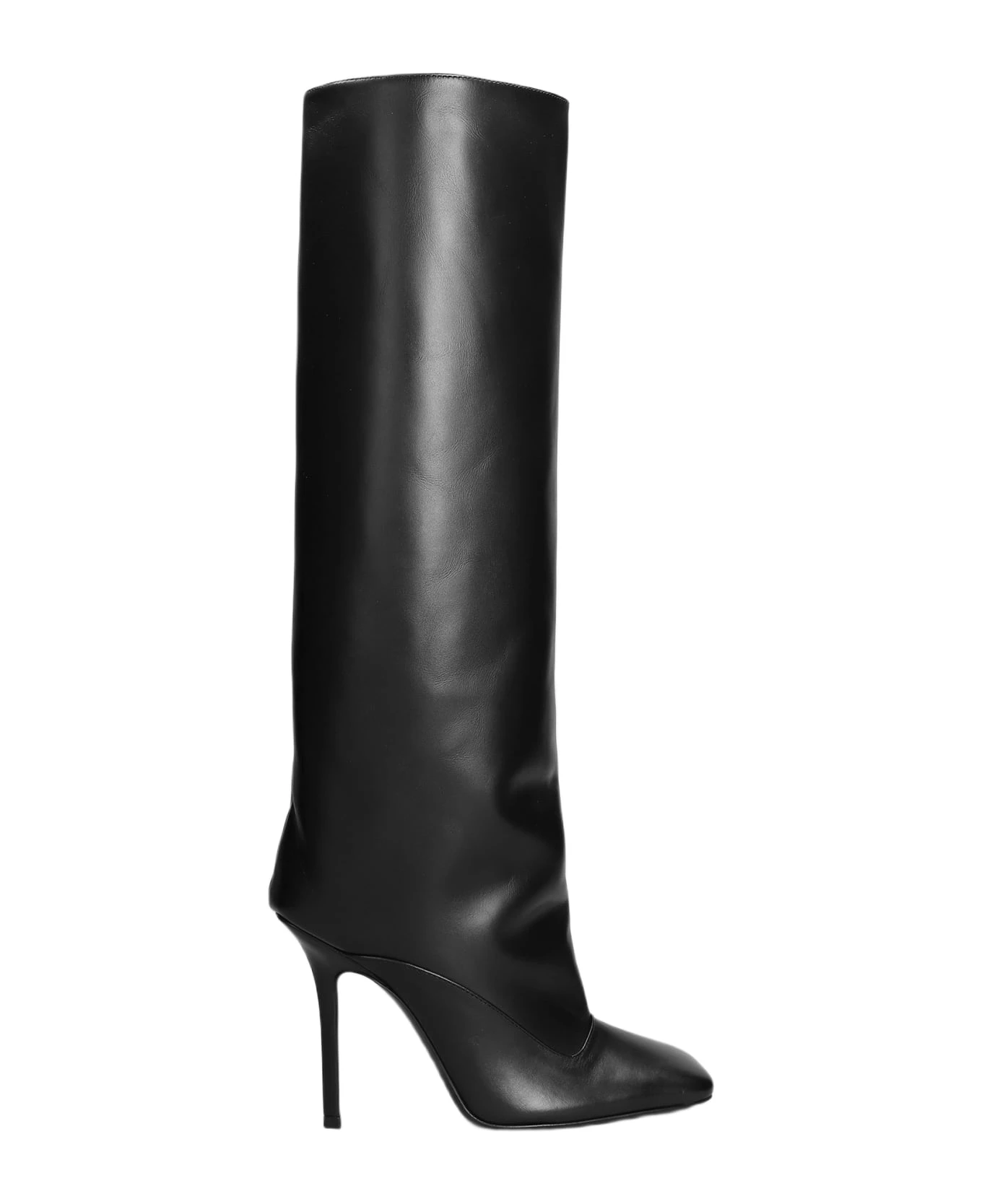 Sienna High heels boots in black leather, square toe, slip on, straight leg, stiletto heel, cuissards, leather sole, 100% leather, Made in Italy, 110 mm heel