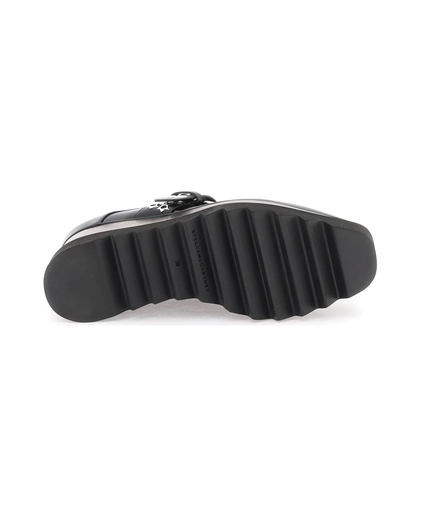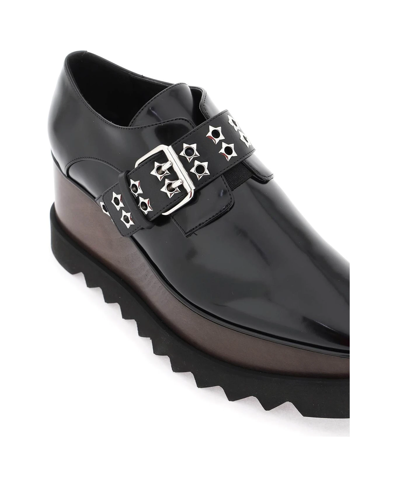 Elyse lace-up shoes by Stella McCartney in glossy faux leather, characterized by the sustainable wood wedge and the gimped rubber sole. Ajusyable buckle with metal star eyelets and faux leather lining.