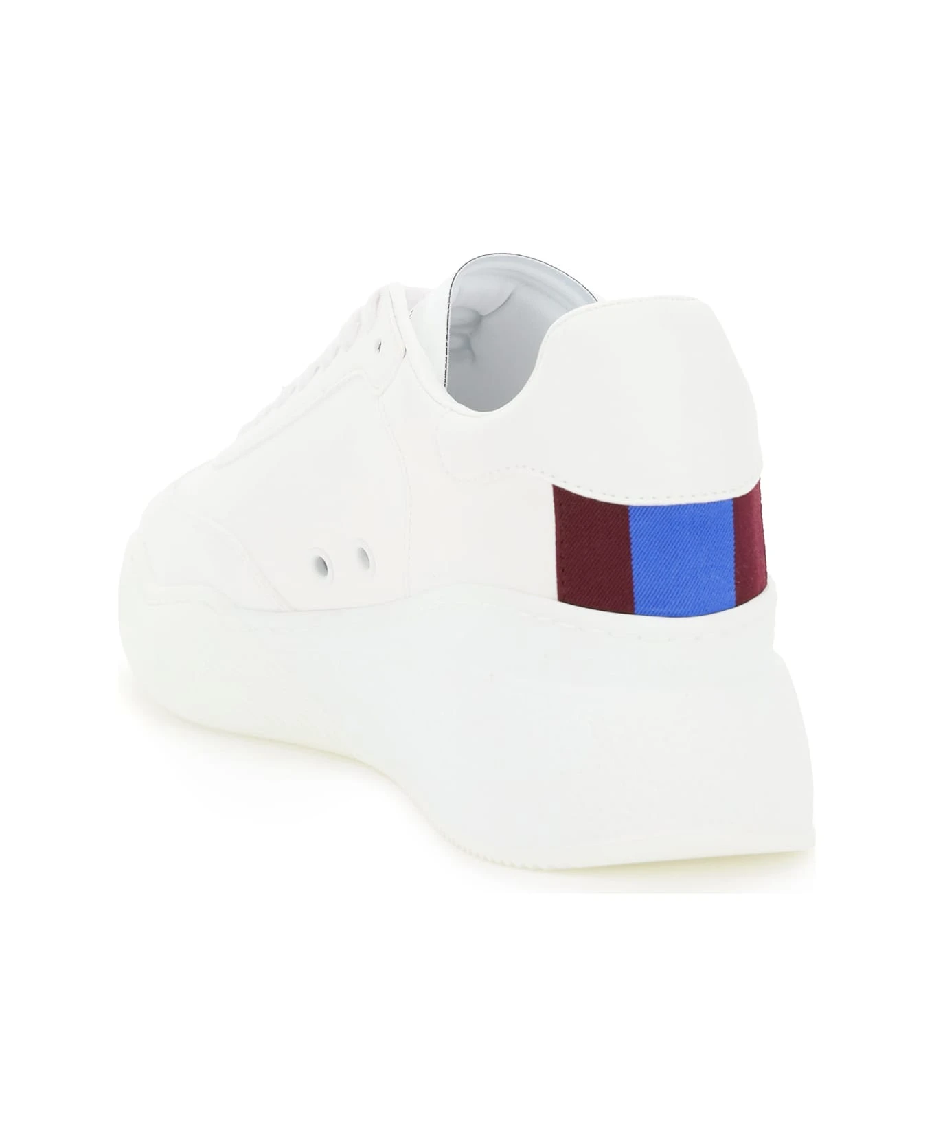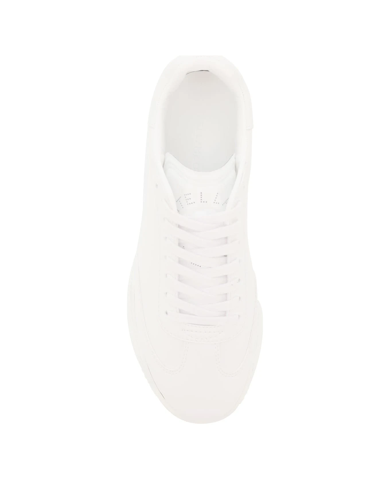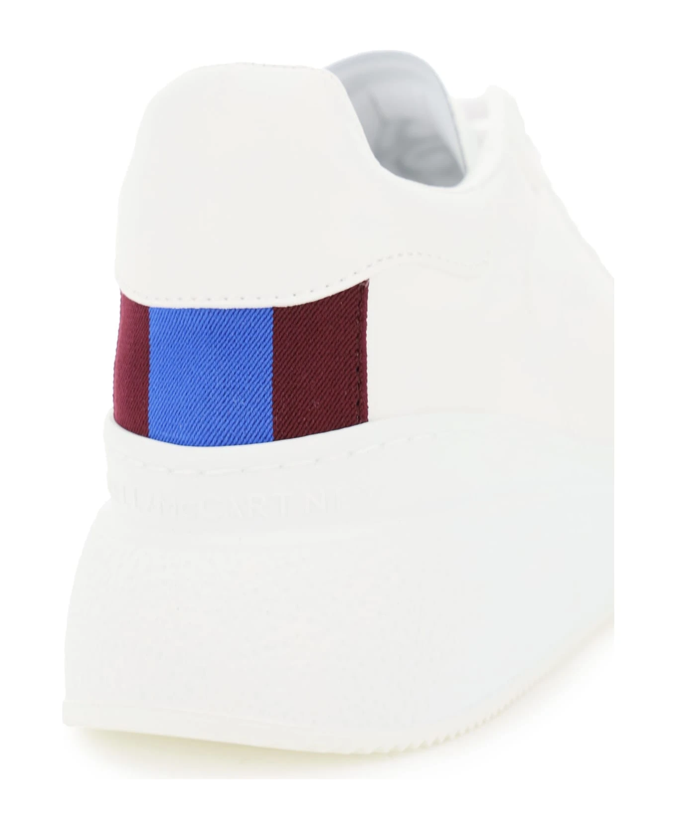 Stella McCartney faux leather sneakers with embossed logo on the tongue and back. Contrast bicolor insert on the back, terrycloth lining, removable faux leather insole, rubber sole. Extra laces included.