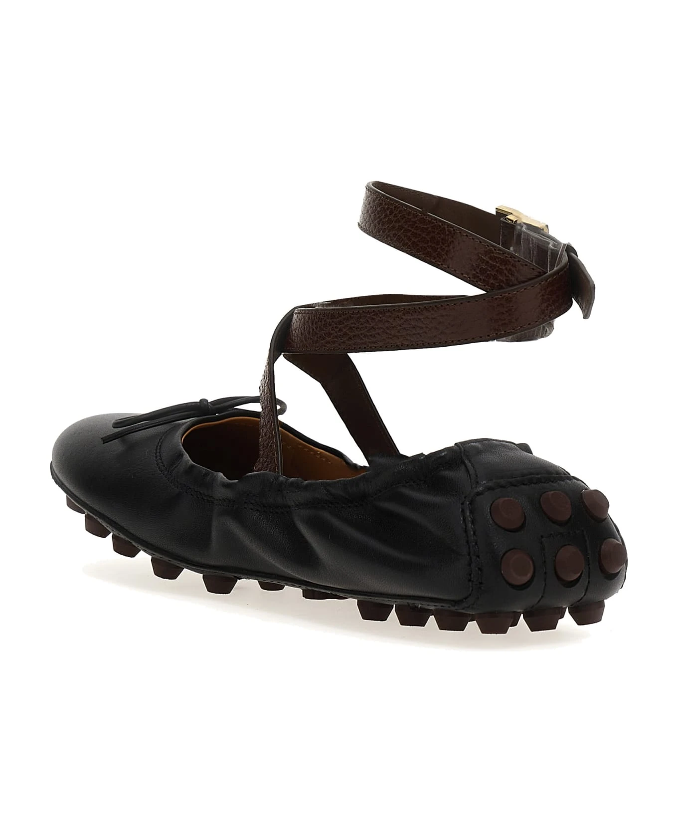‘Des Gommini’ leather ballet flats with adjustable ankle strap, metal logo, sole with iconic rubber pads.