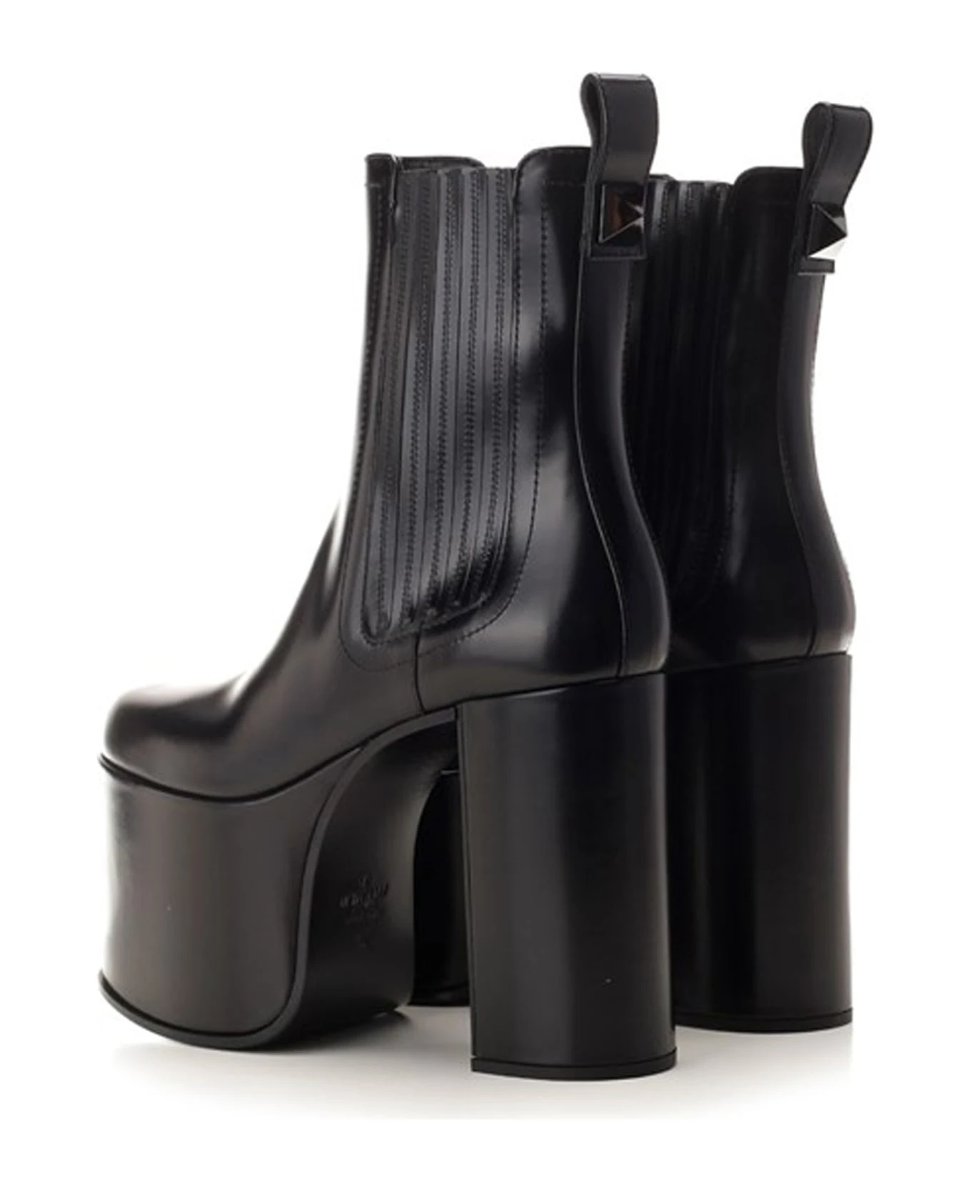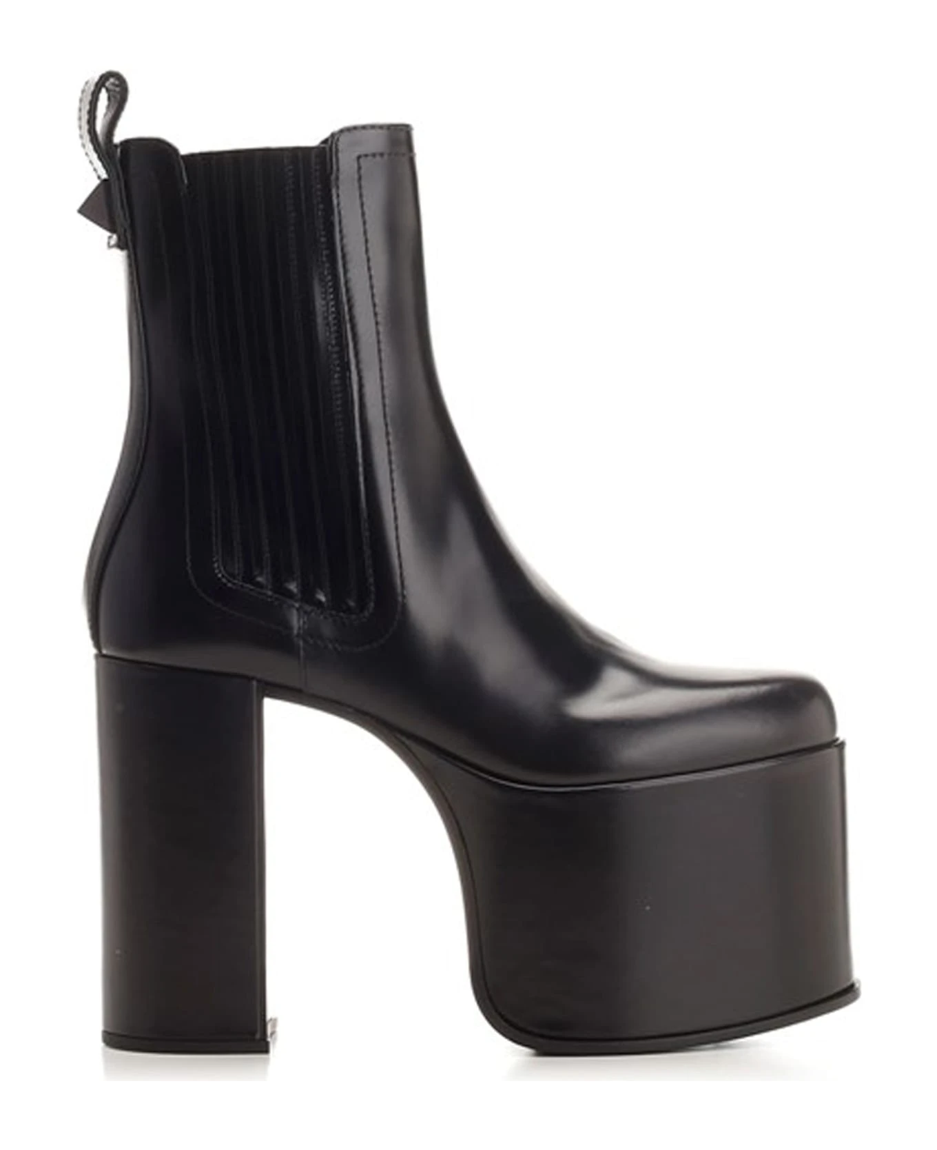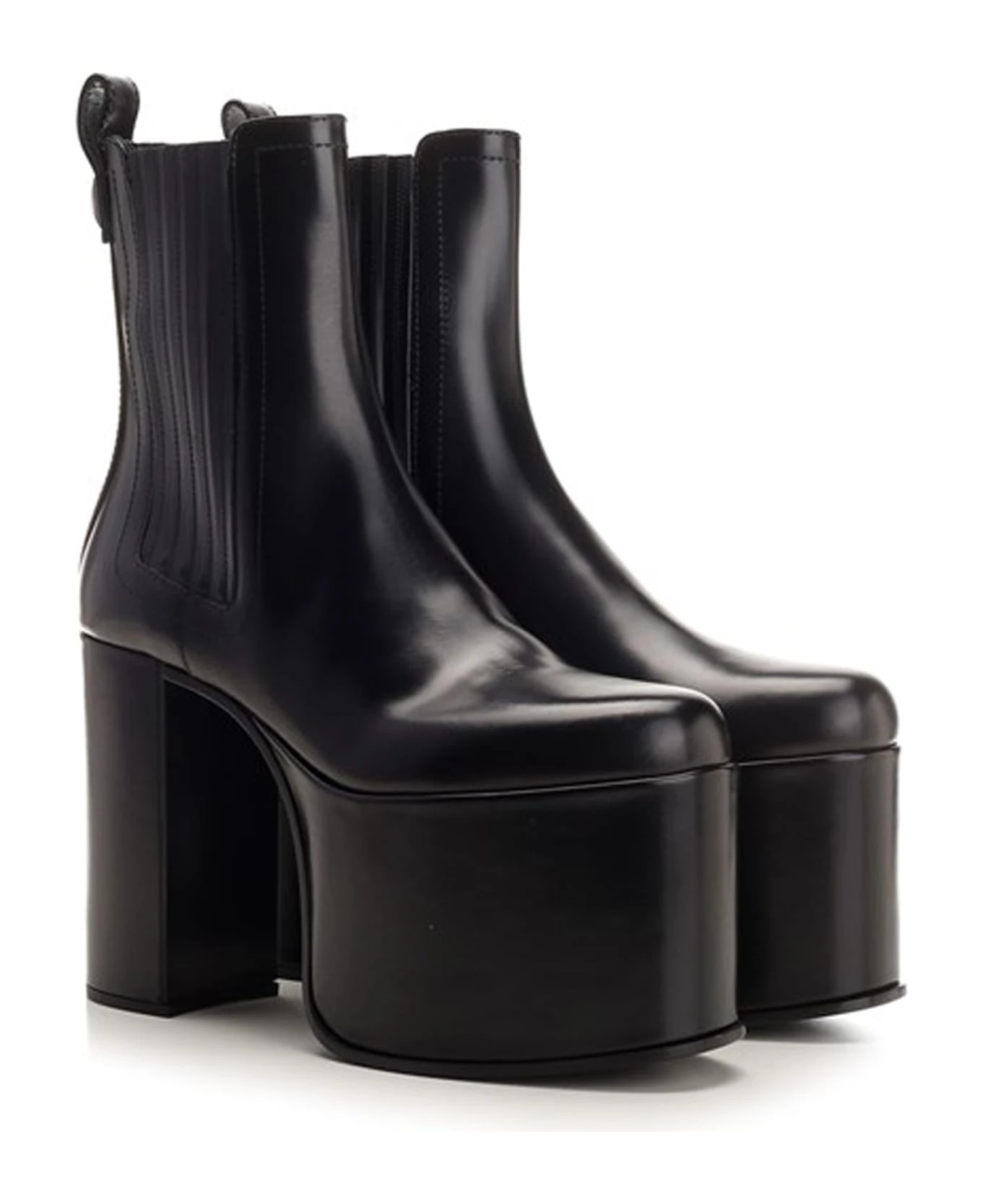 – Composition: 100% calf leather – Leather lining, insole, sole – Two side elasticated panels – Rounded toe – Pull tab at the rear – Heel 12,5 cm / 4,9 in