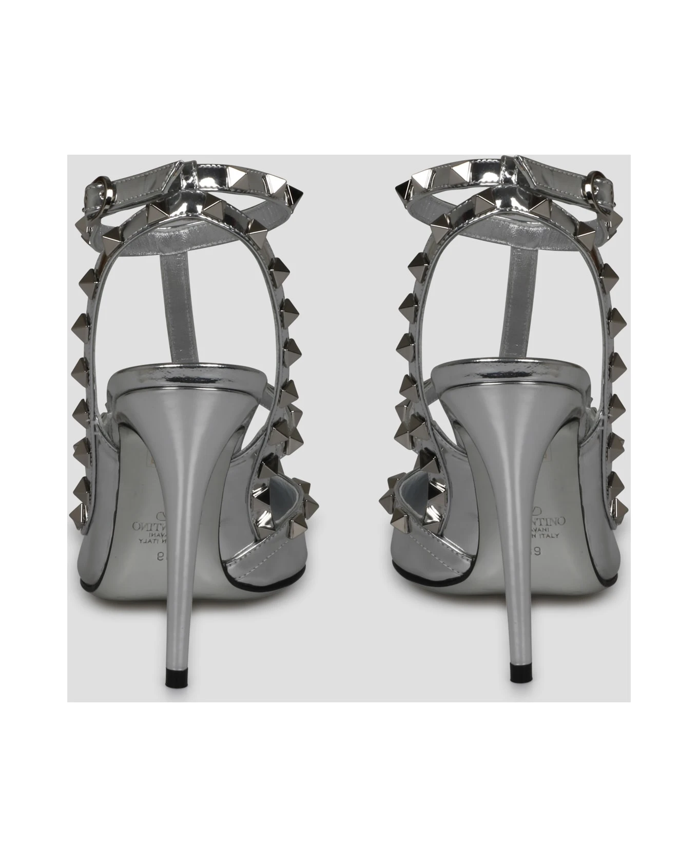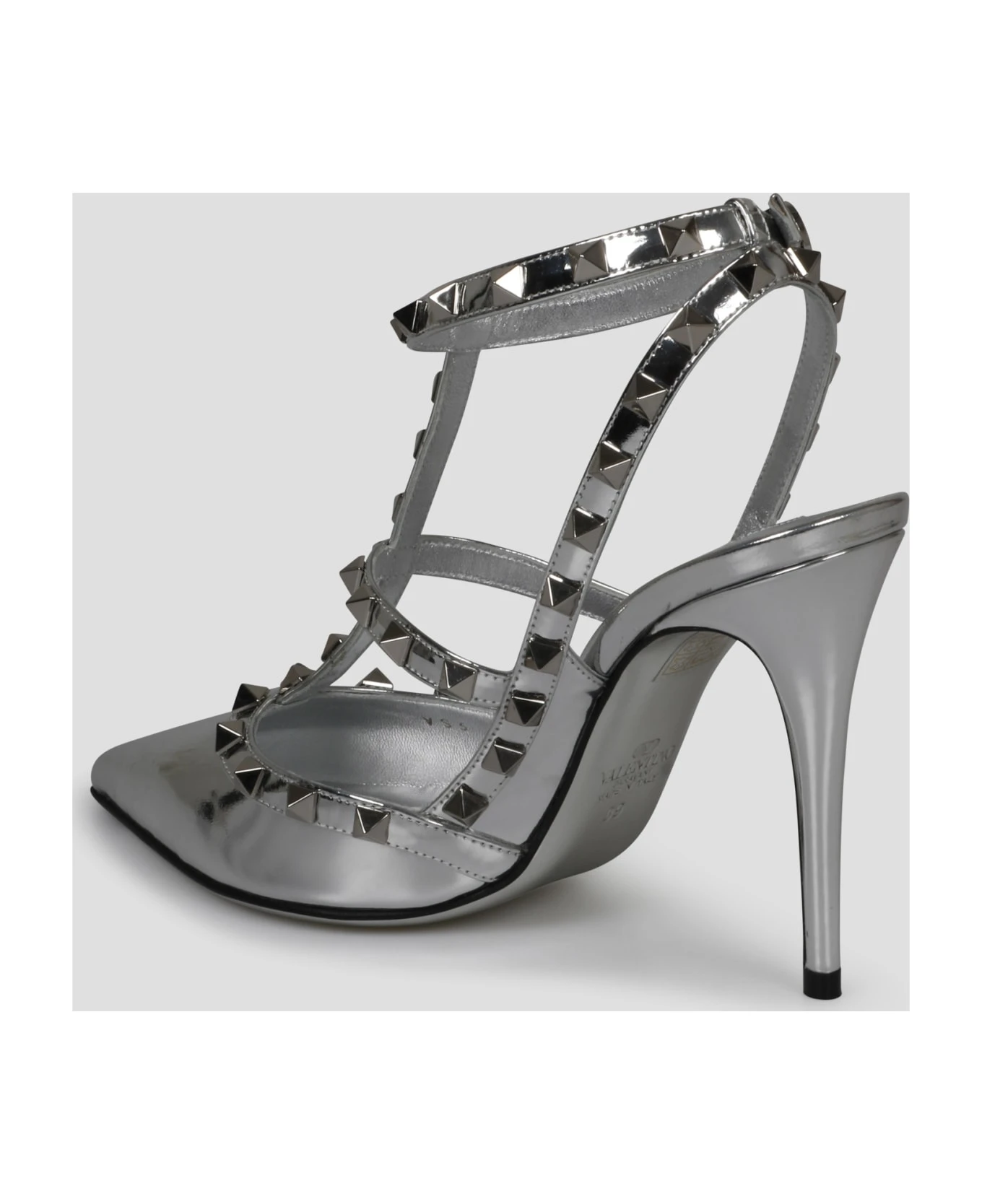 Valentino Garavani Rockstud mirror-effect leather pump with straps and signature studs. – FW23