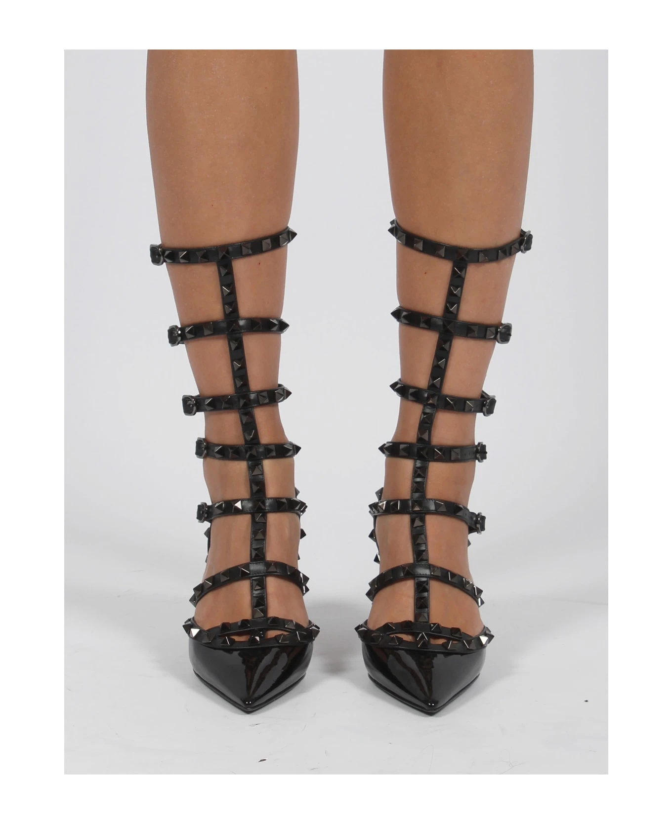 Valentino Garavani pumps, in patent leather with straps embellished with Rockstud studs on the calf. – FW23