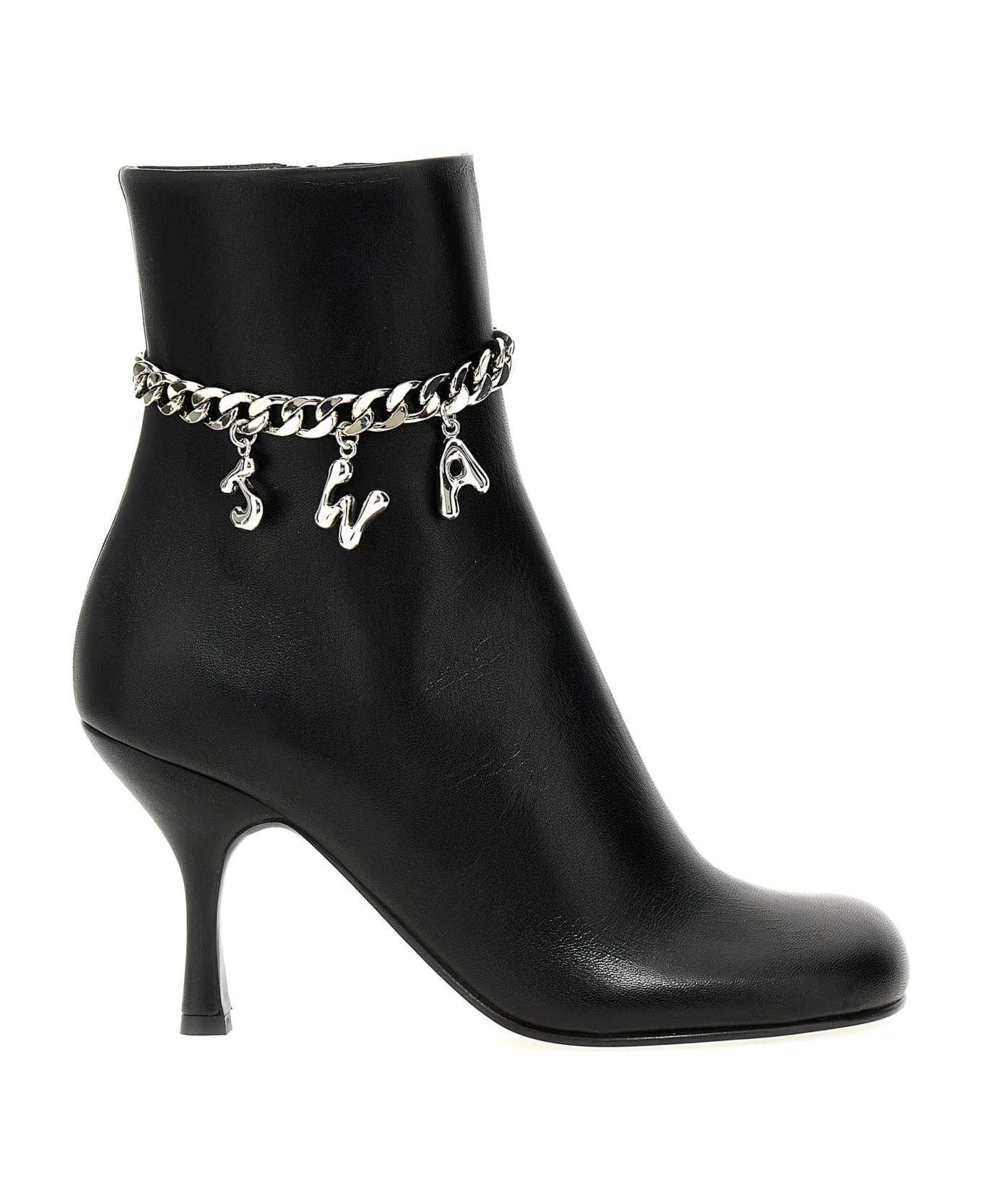 ‘W/P’ leather ankle boots with metal anklet and charms and zip closure.